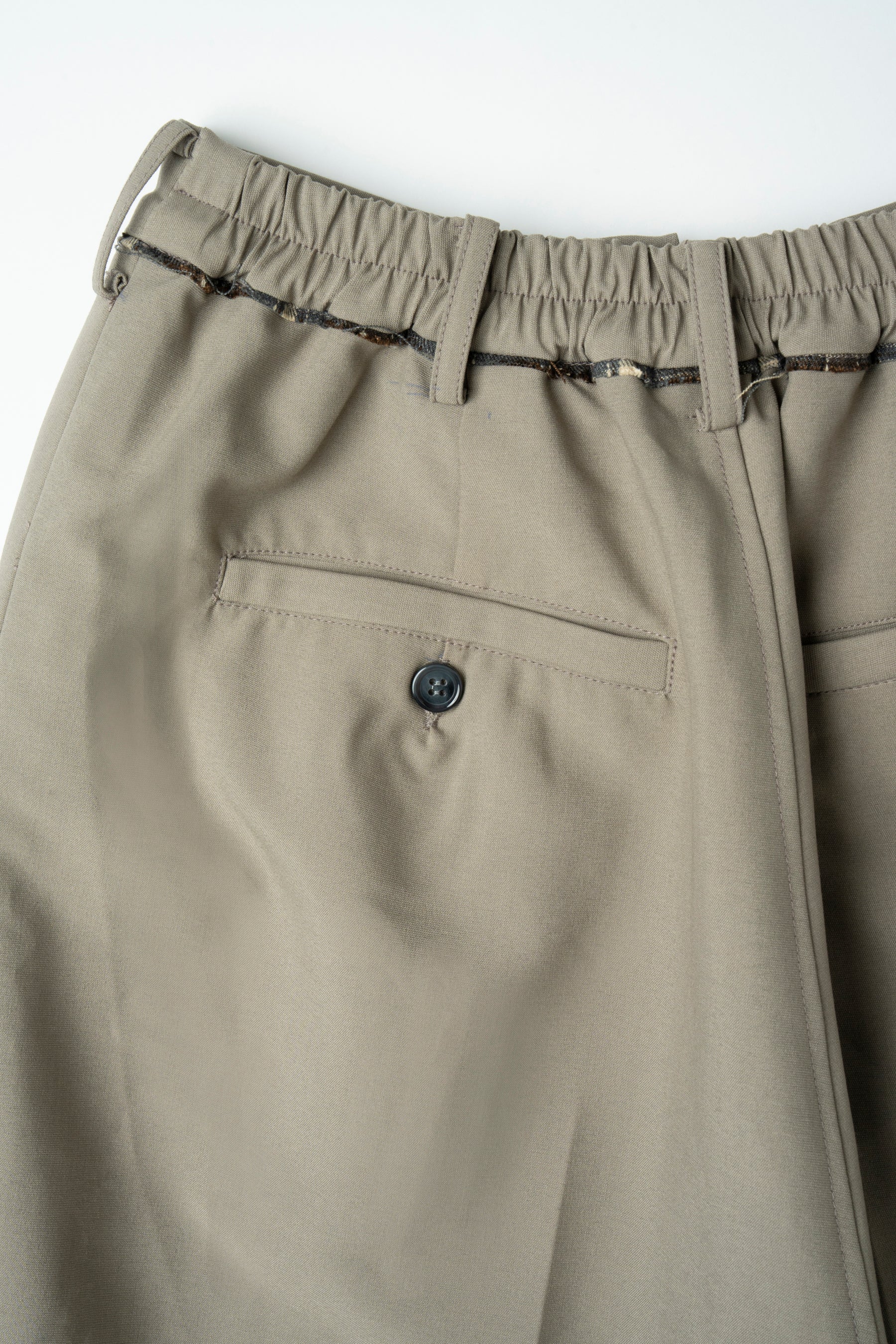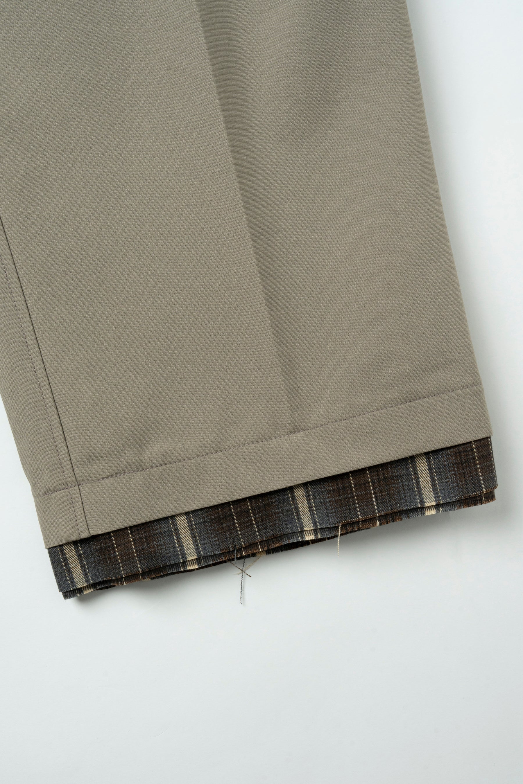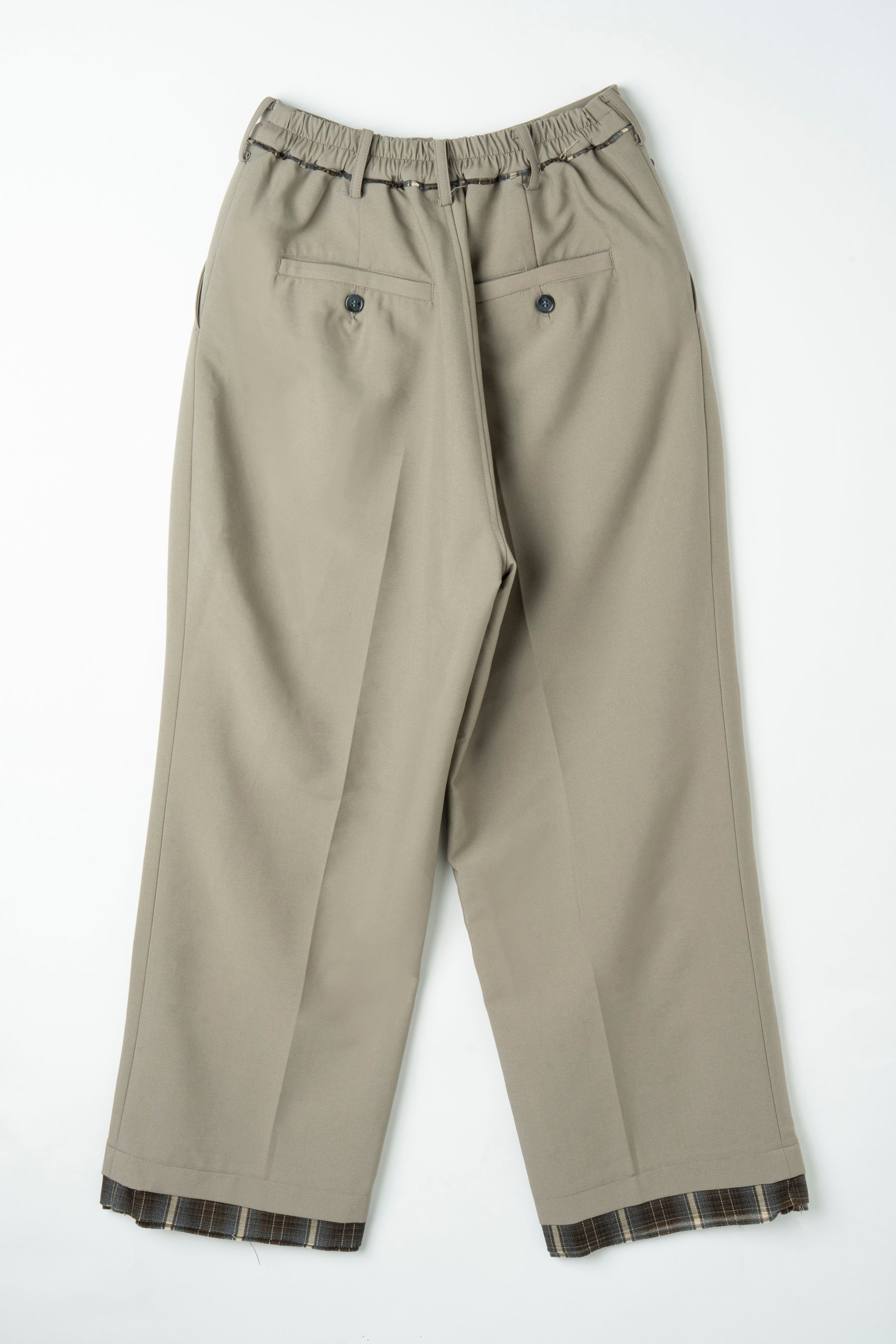 ウエスト部と裾にチェック生地をドッキングさせた個性溢れる一着。
