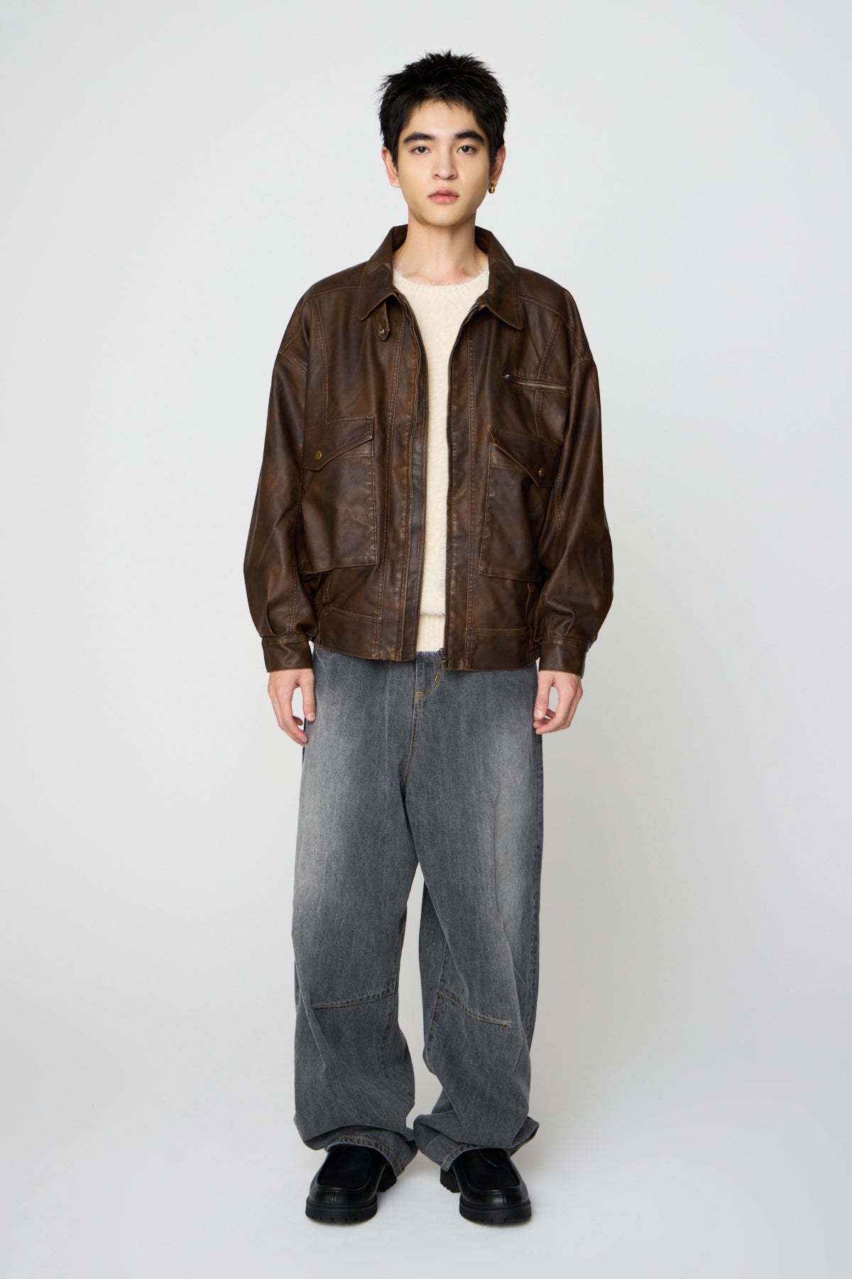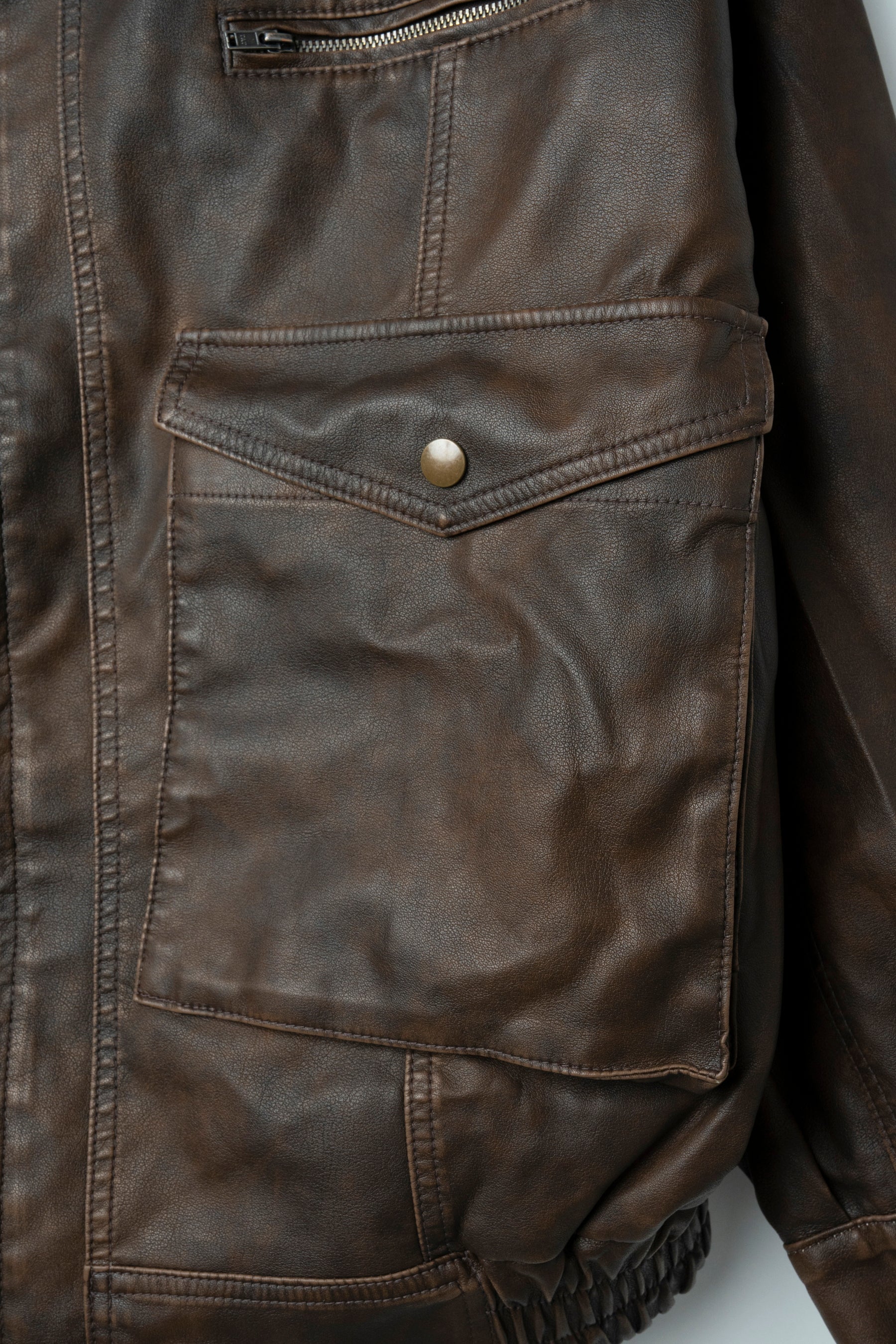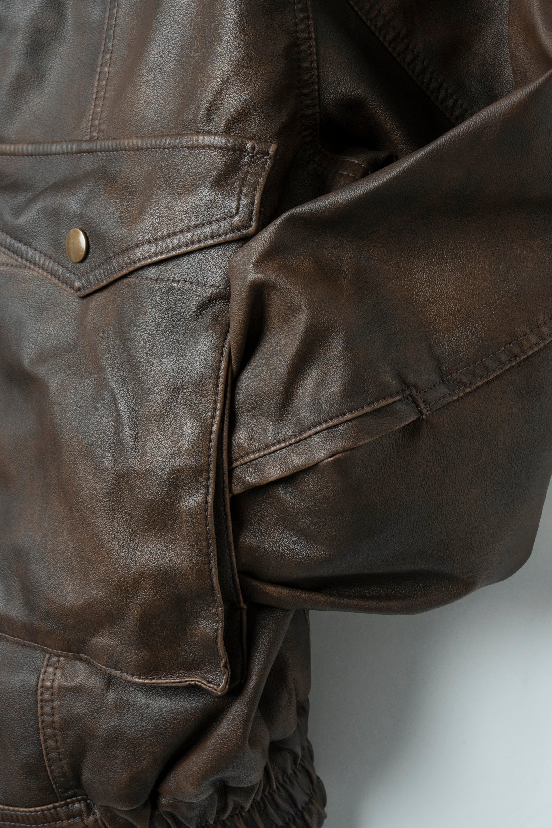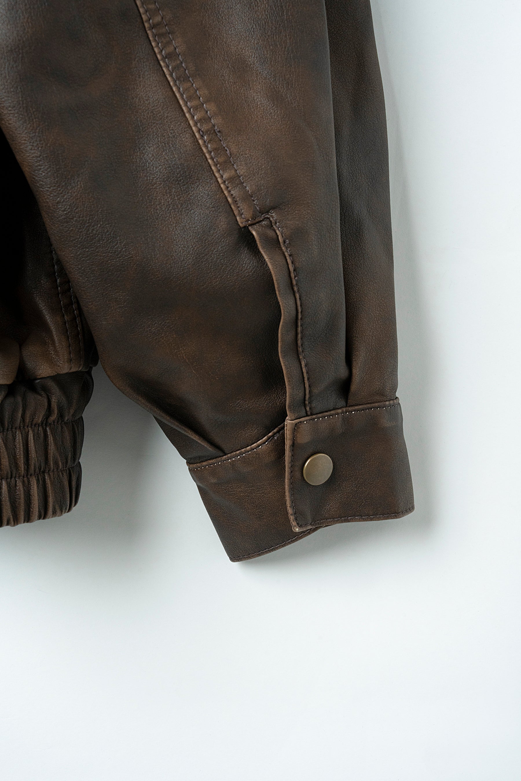 ヴィンテージ加工を施したフェイクレザーブルゾン。