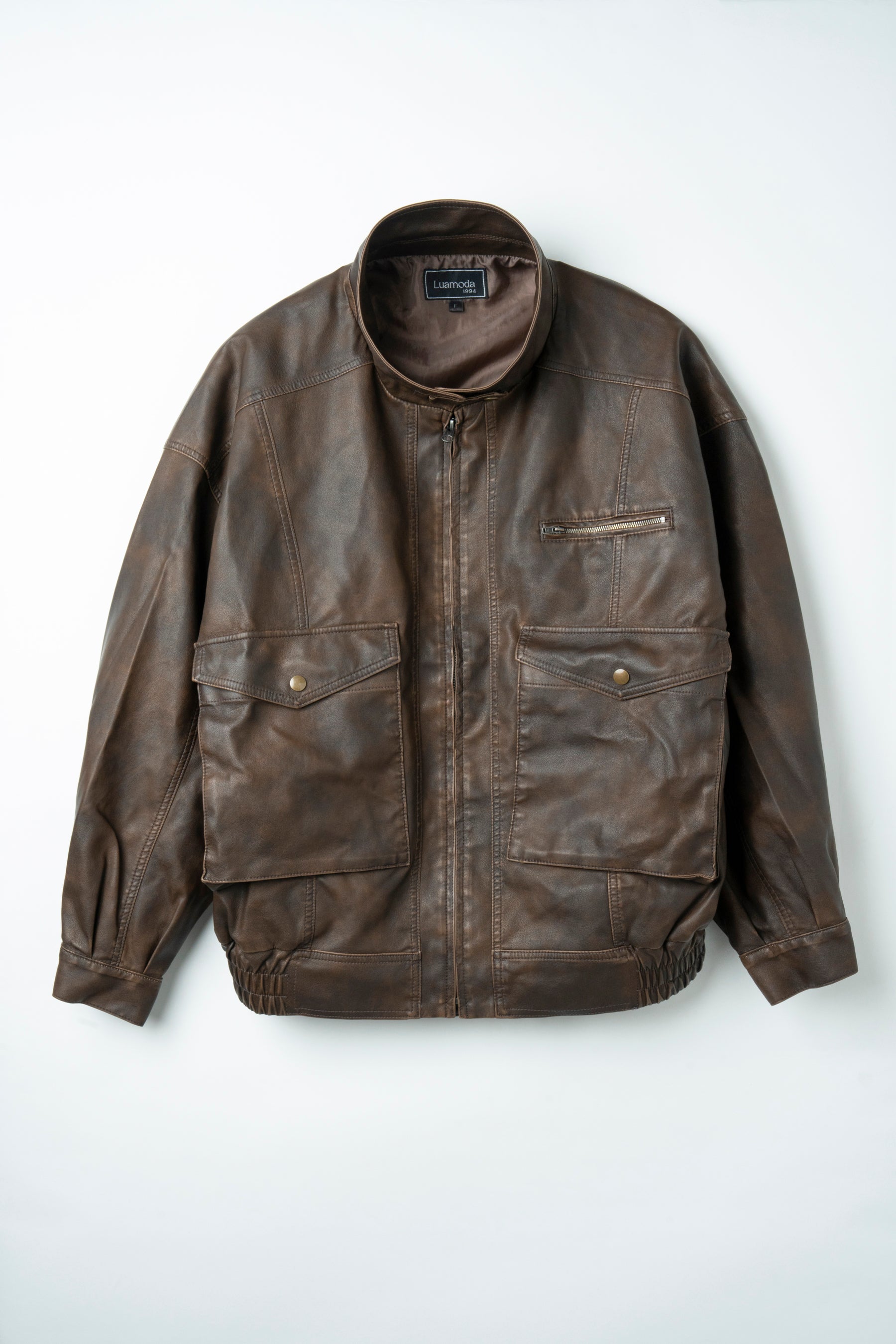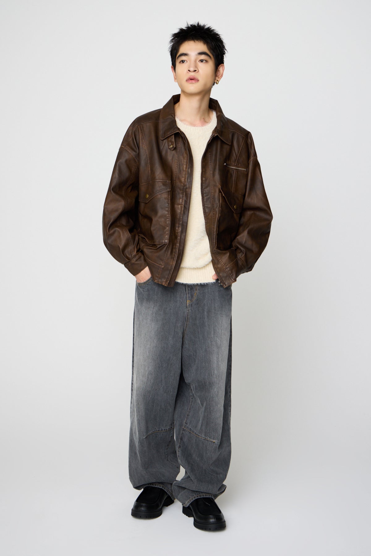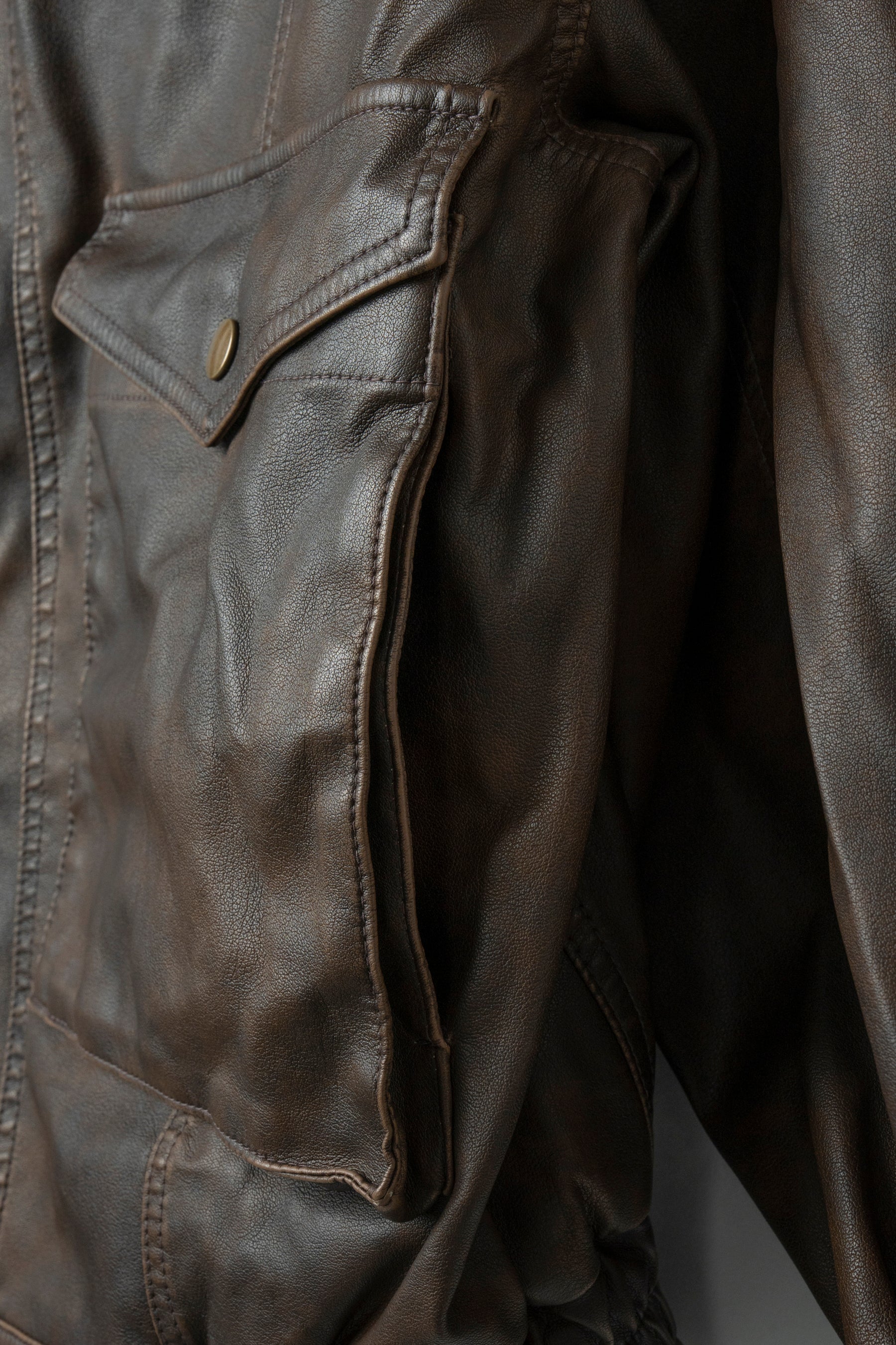 ヴィンテージ加工を施したフェイクレザーブルゾン。