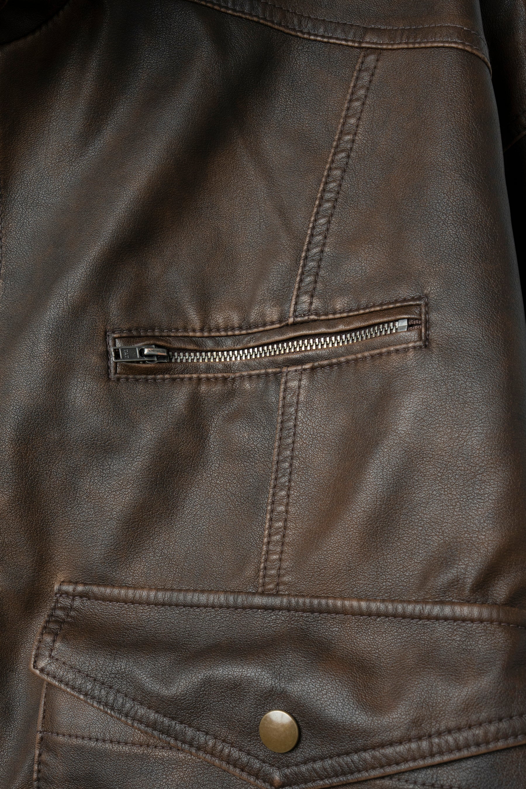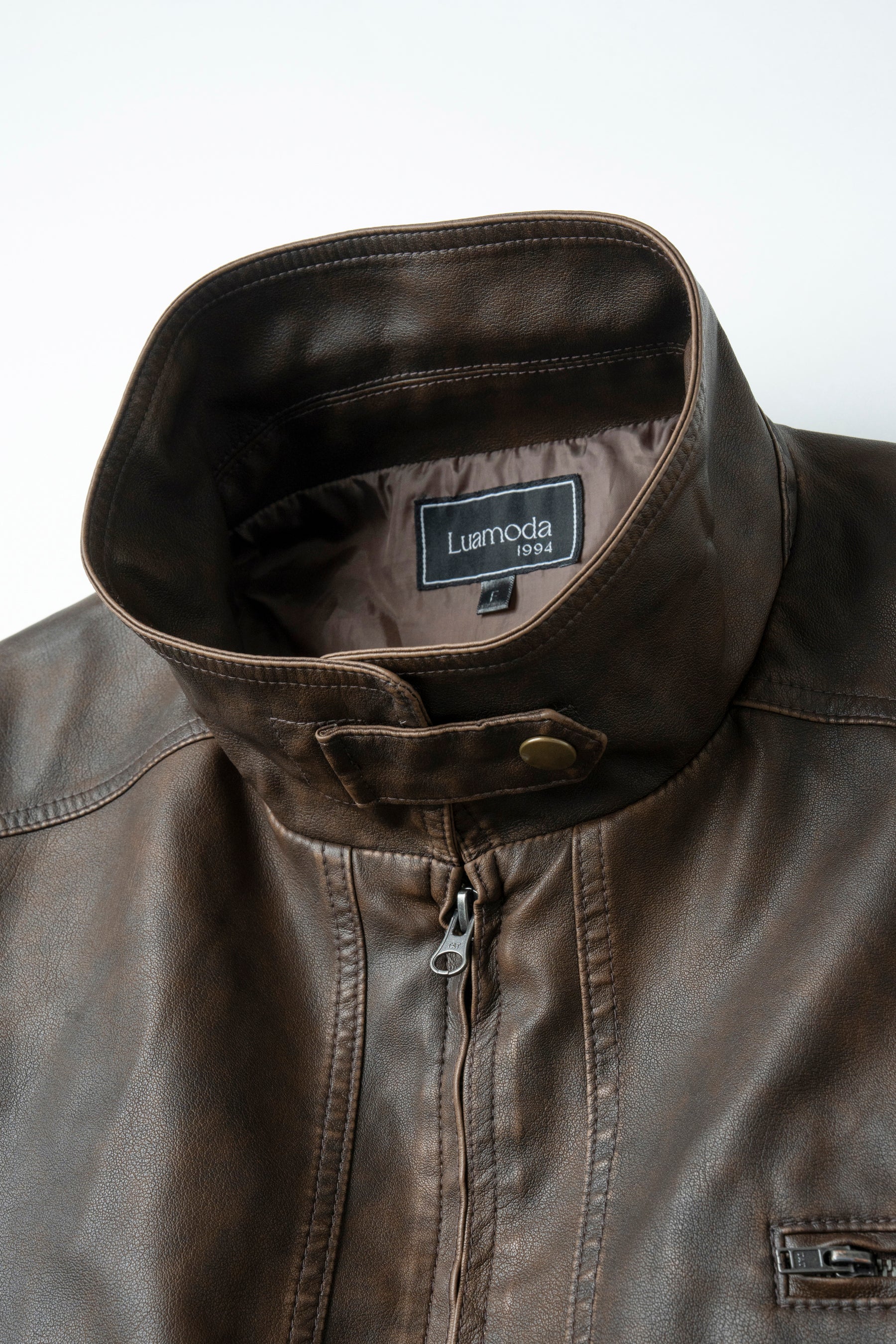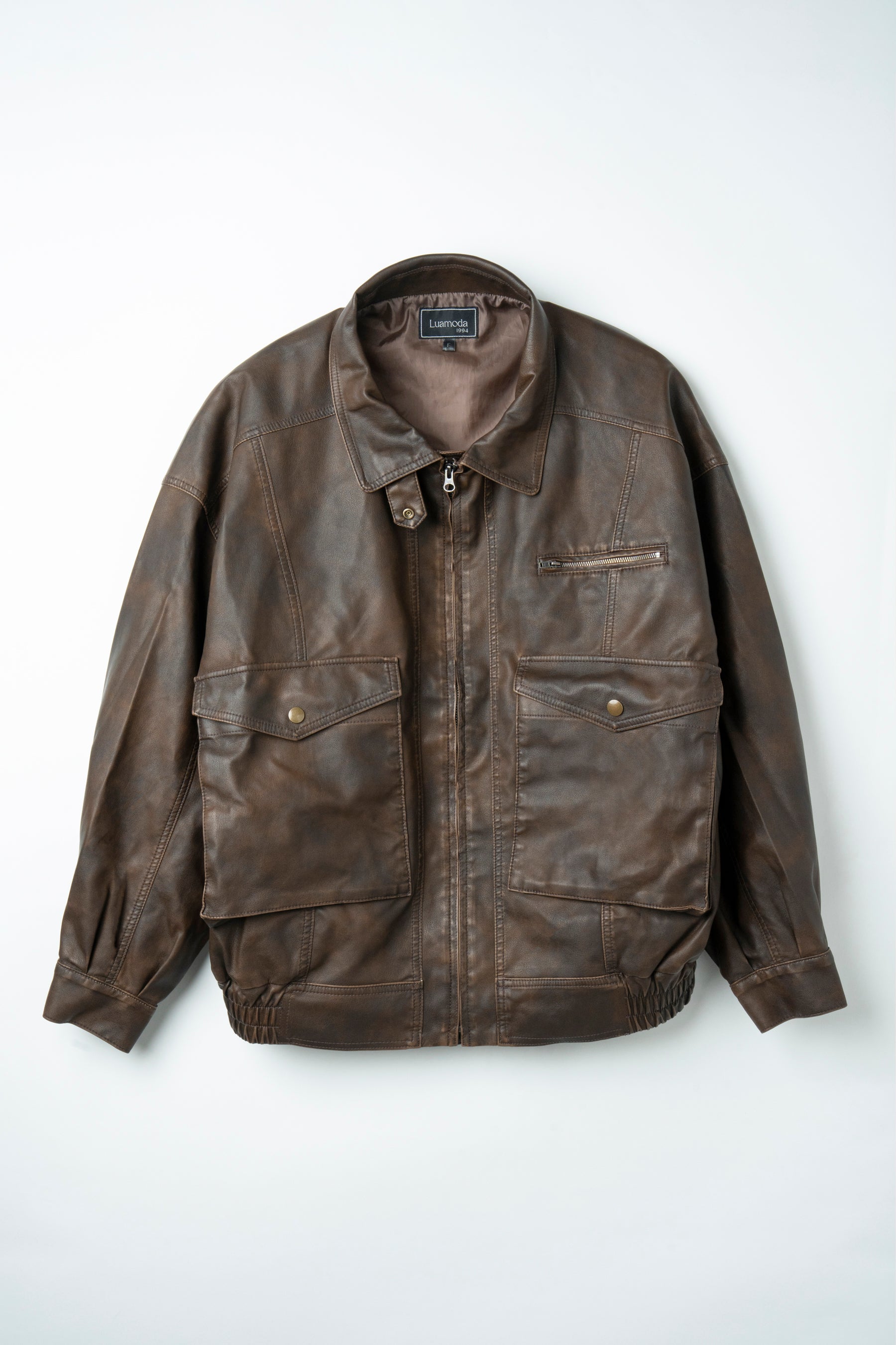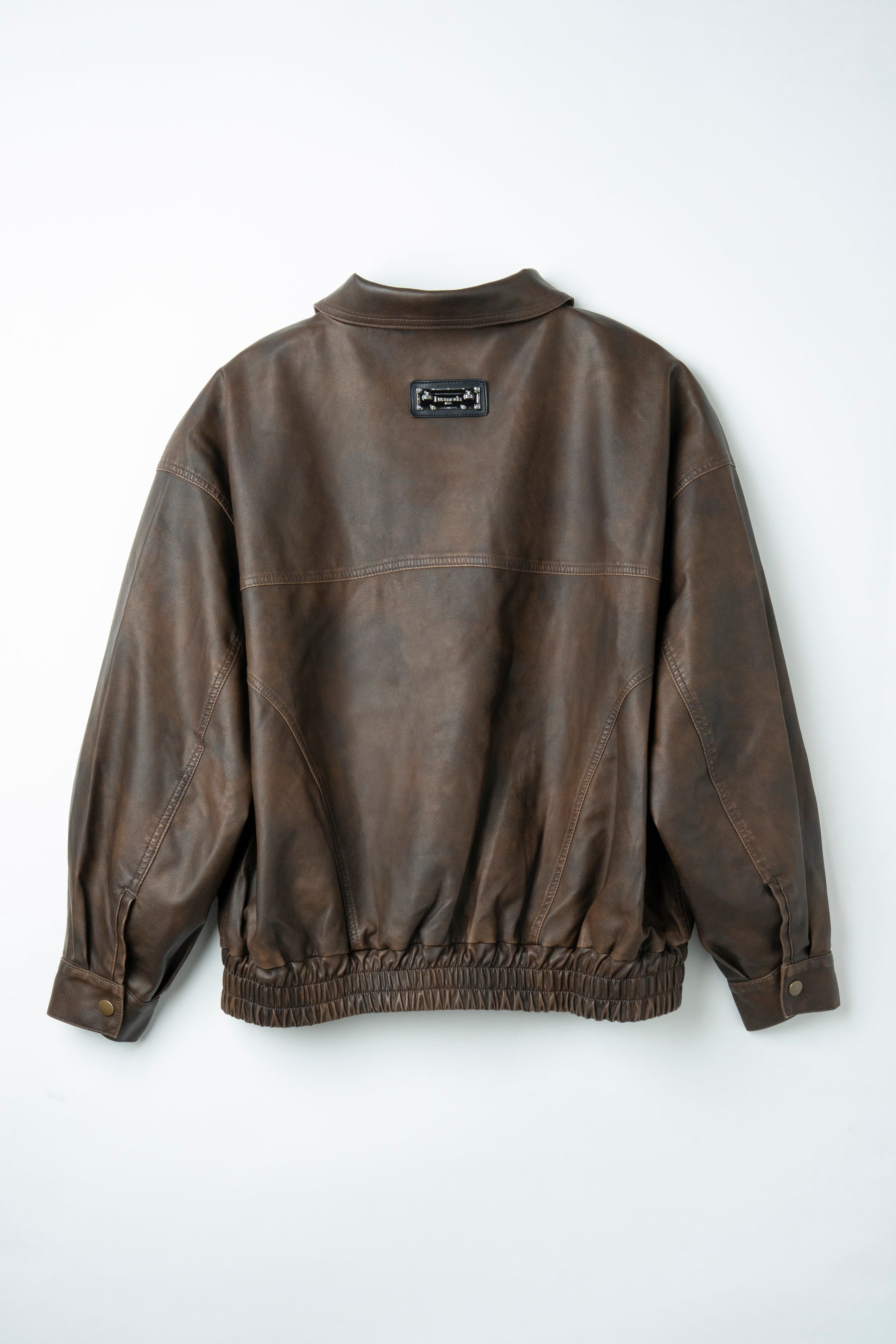 ヴィンテージ加工を施したフェイクレザーブルゾン。