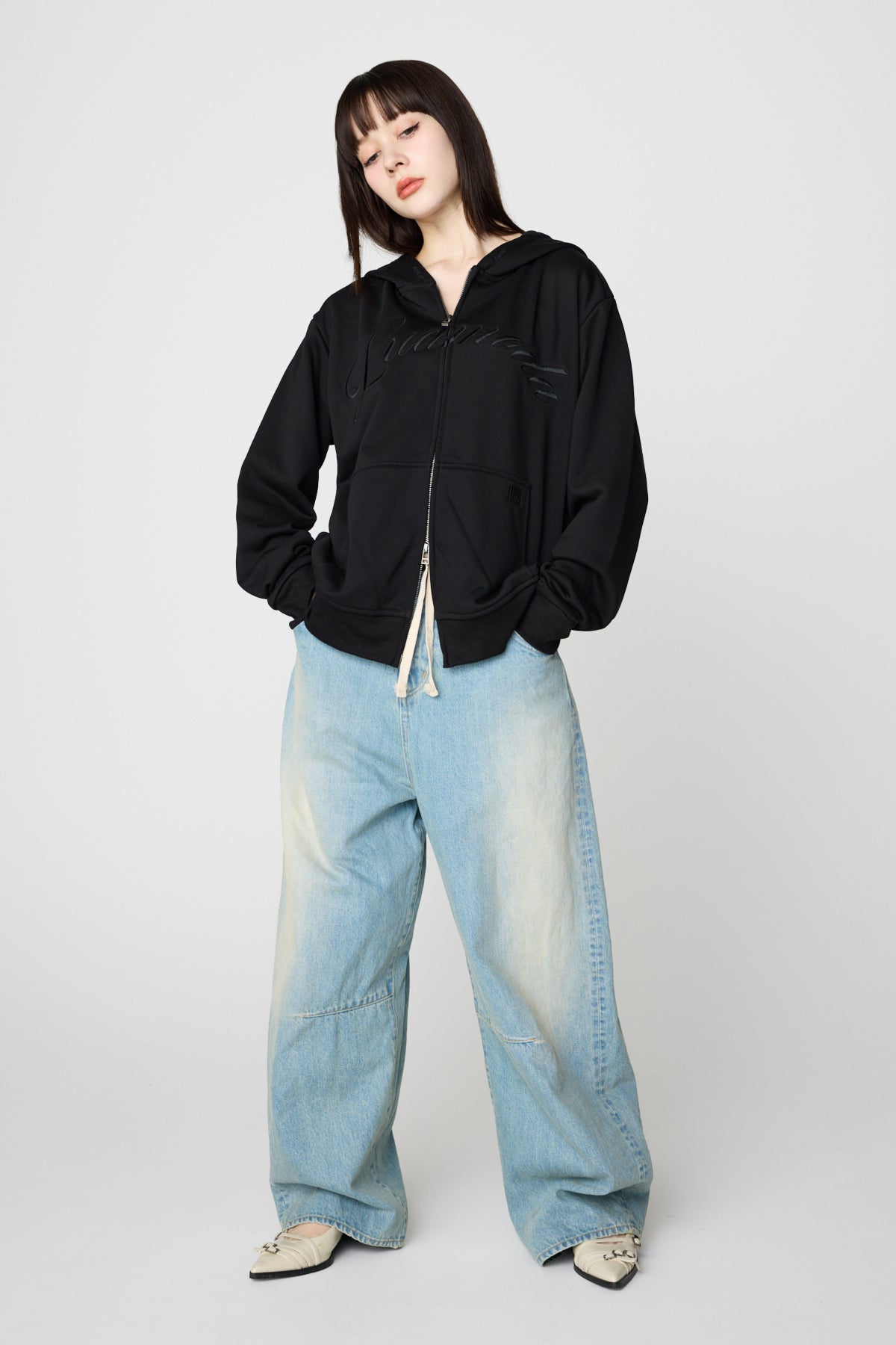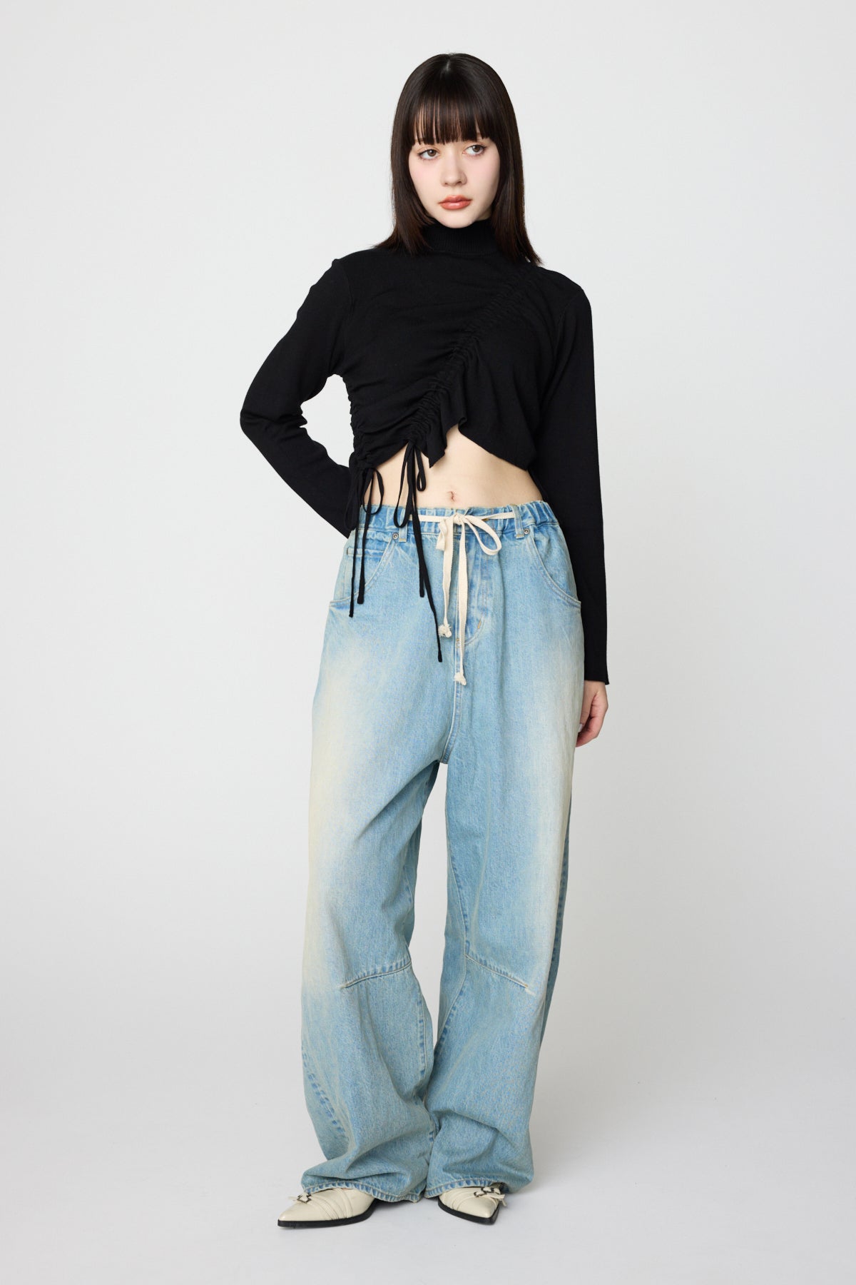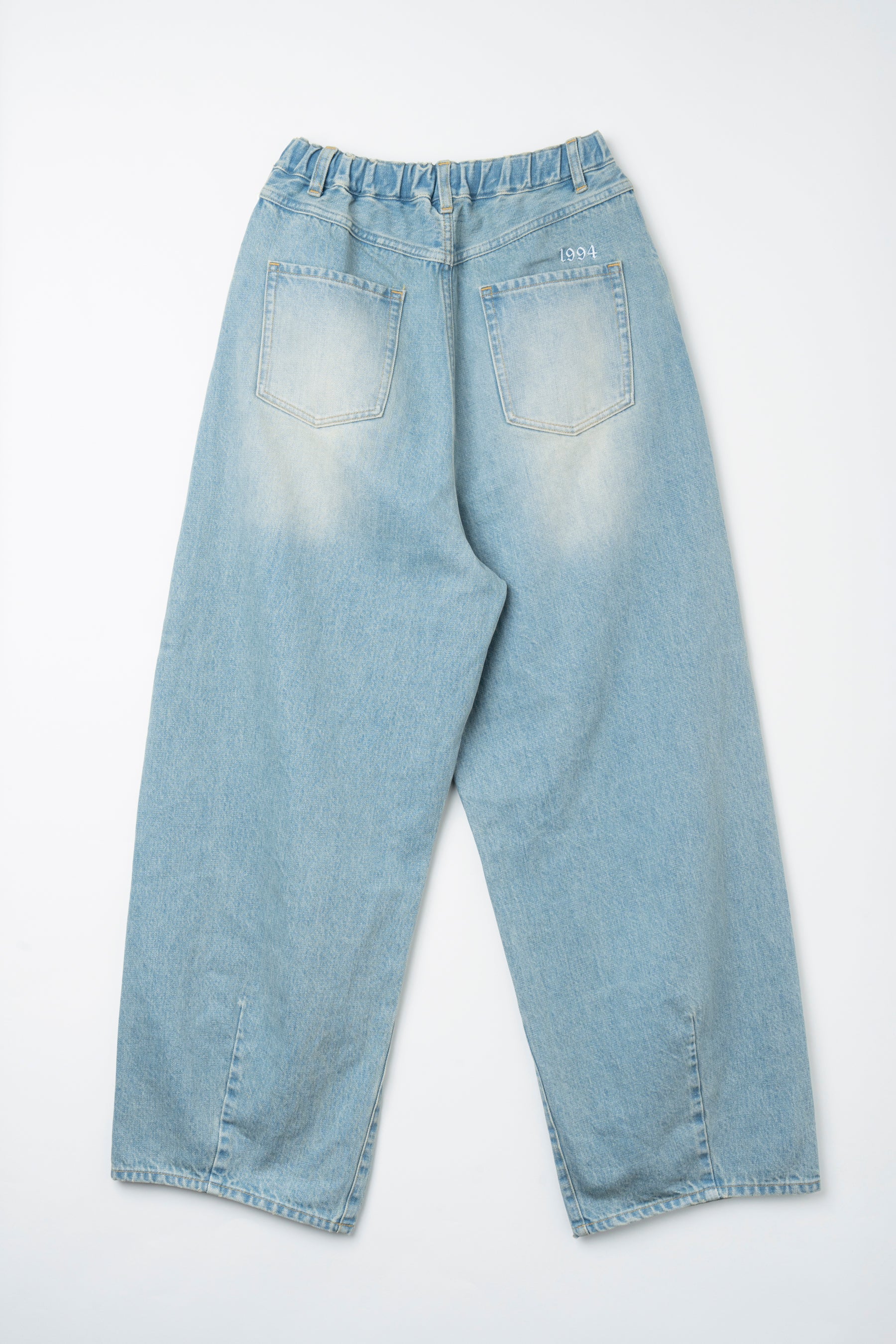 トレンドのバレルレッグパターンをベースに、随所にLuamodaの遊びを凝縮したデニムパンツ。