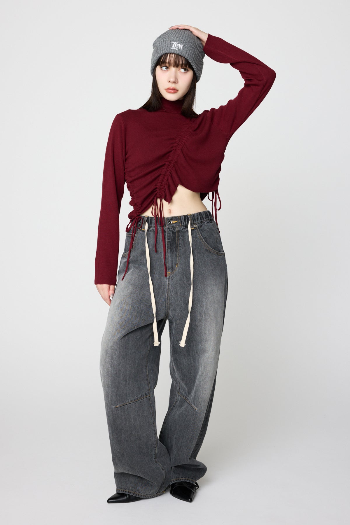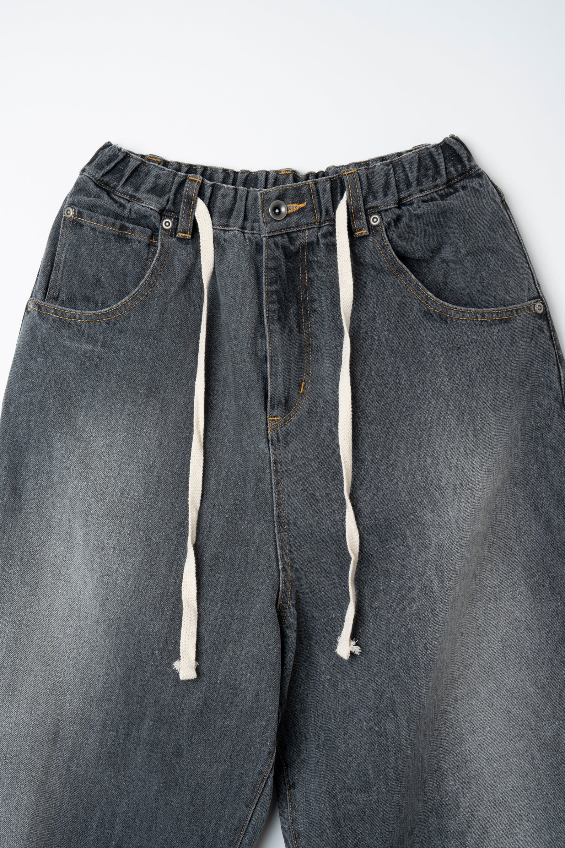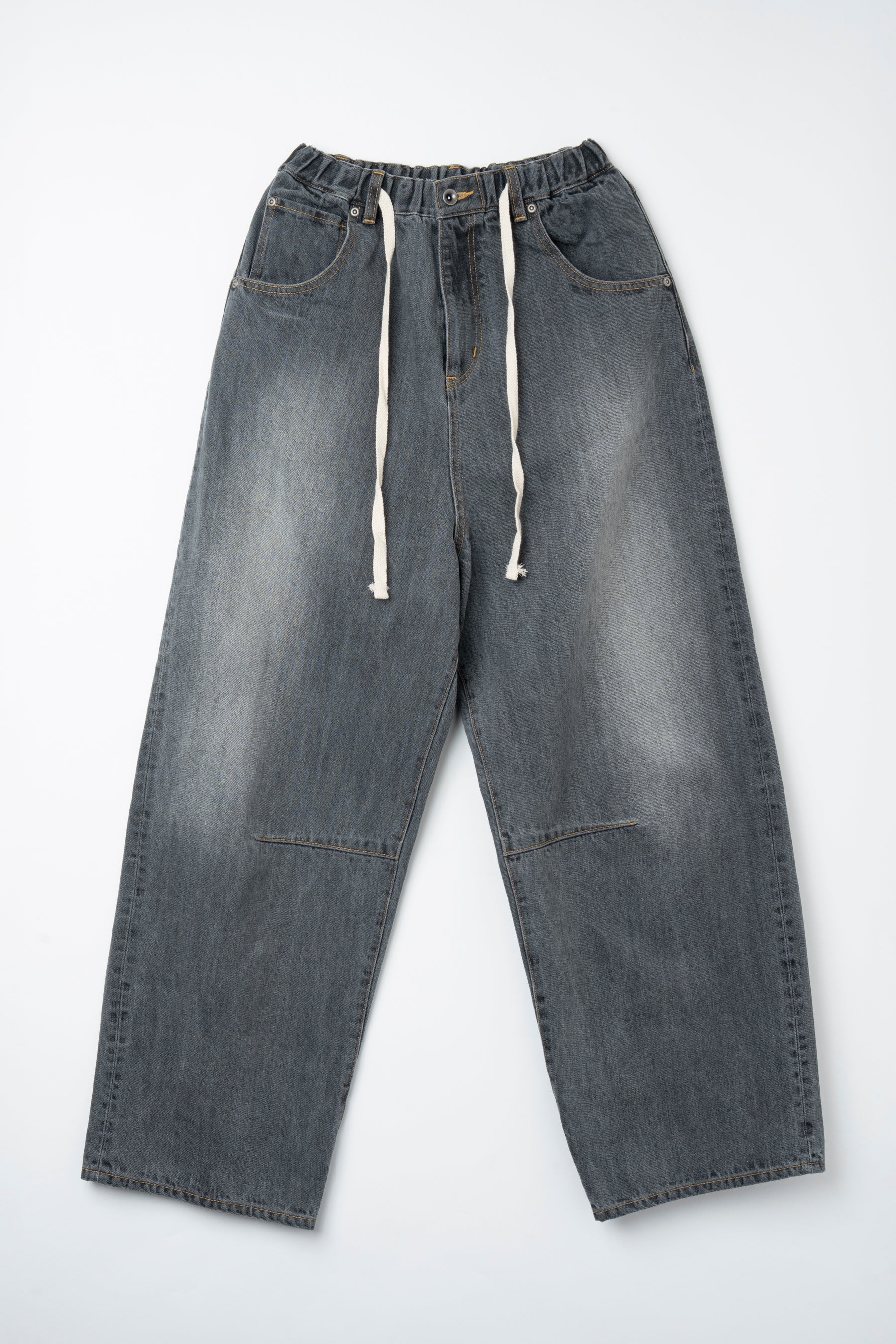トレンドのバレルレッグパターンをベースに、随所にLuamodaの遊びを凝縮したデニムパンツ。