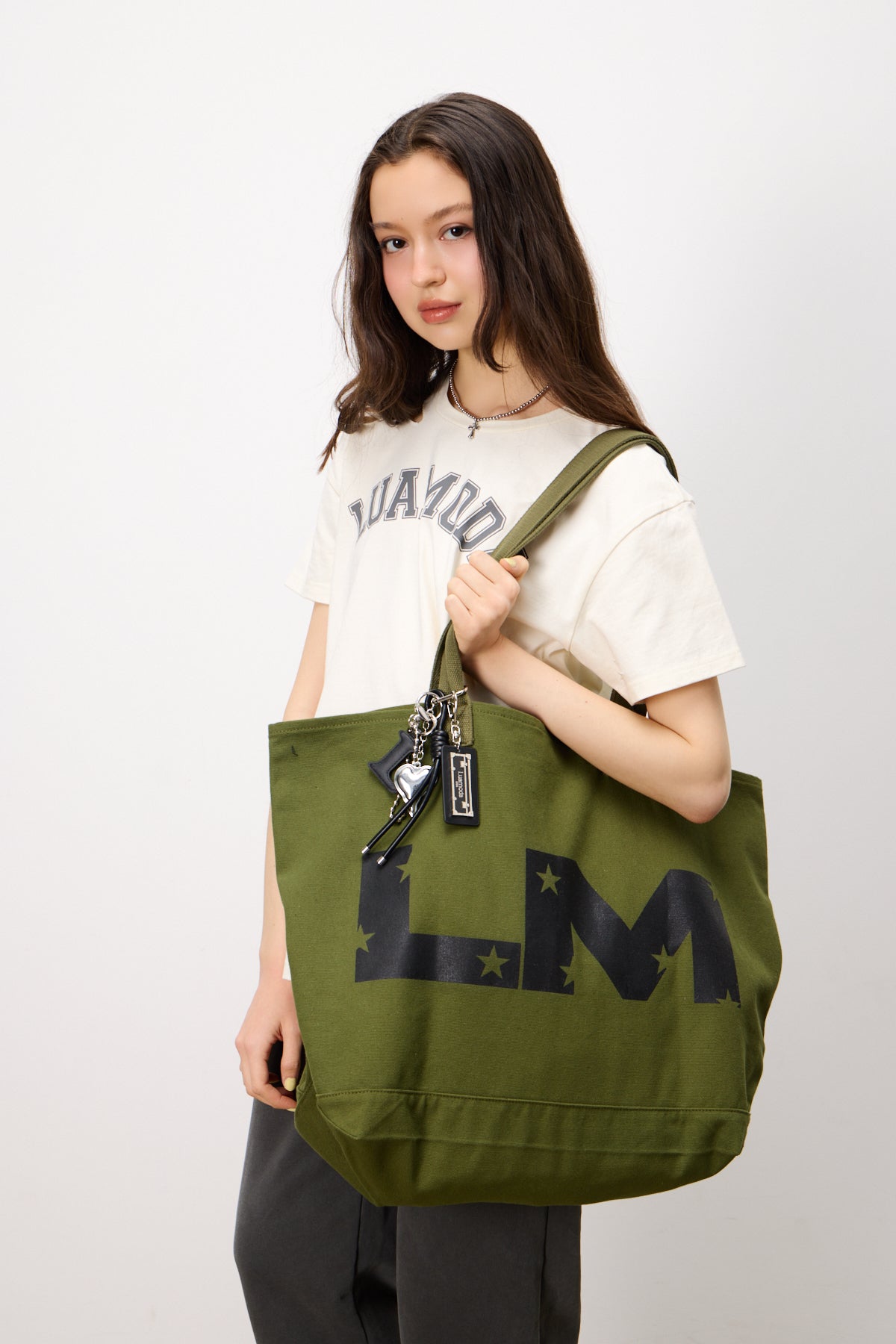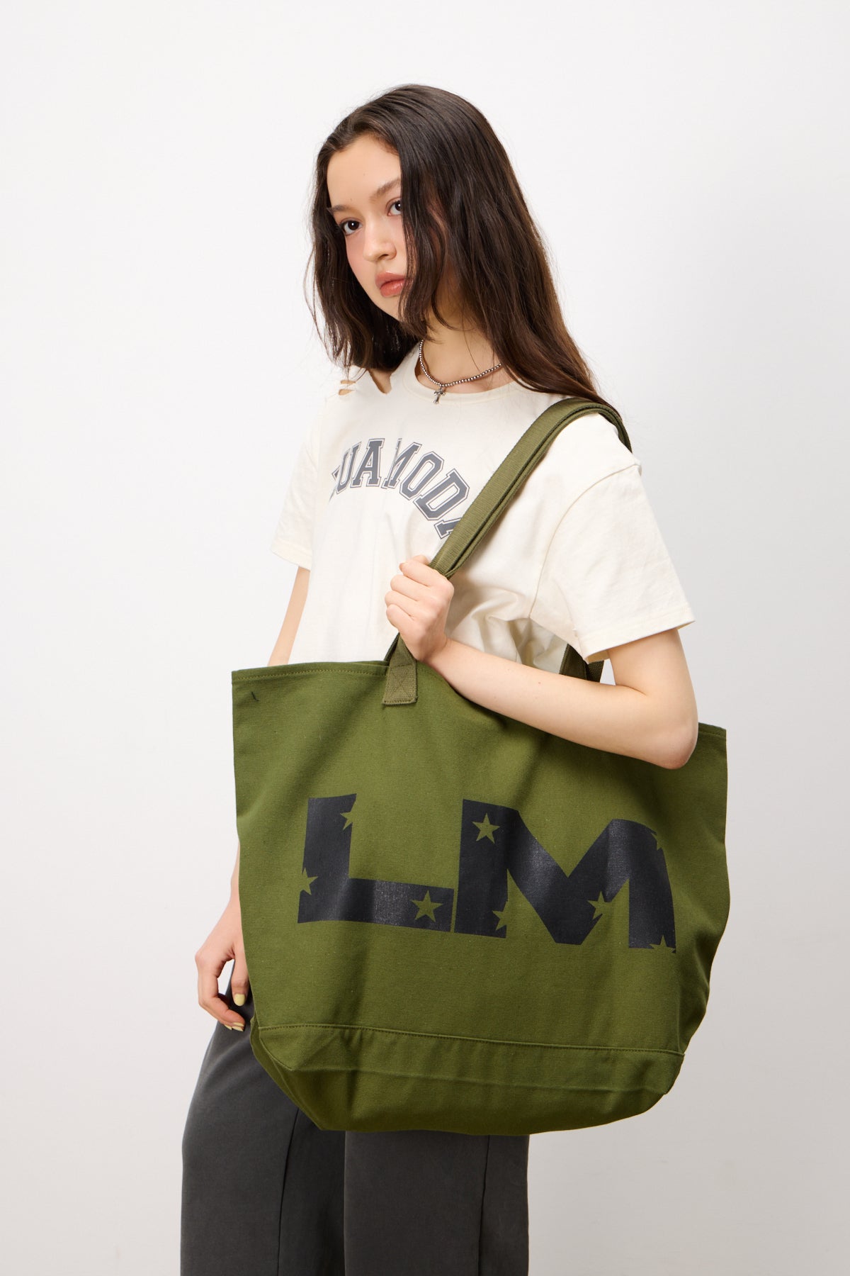 大きくプリントされたLMロゴが個性を演出。