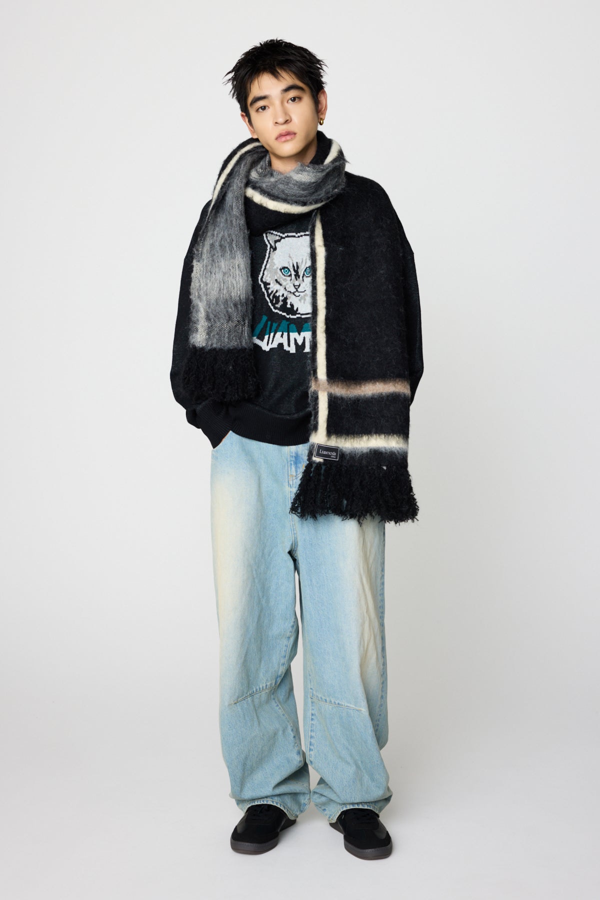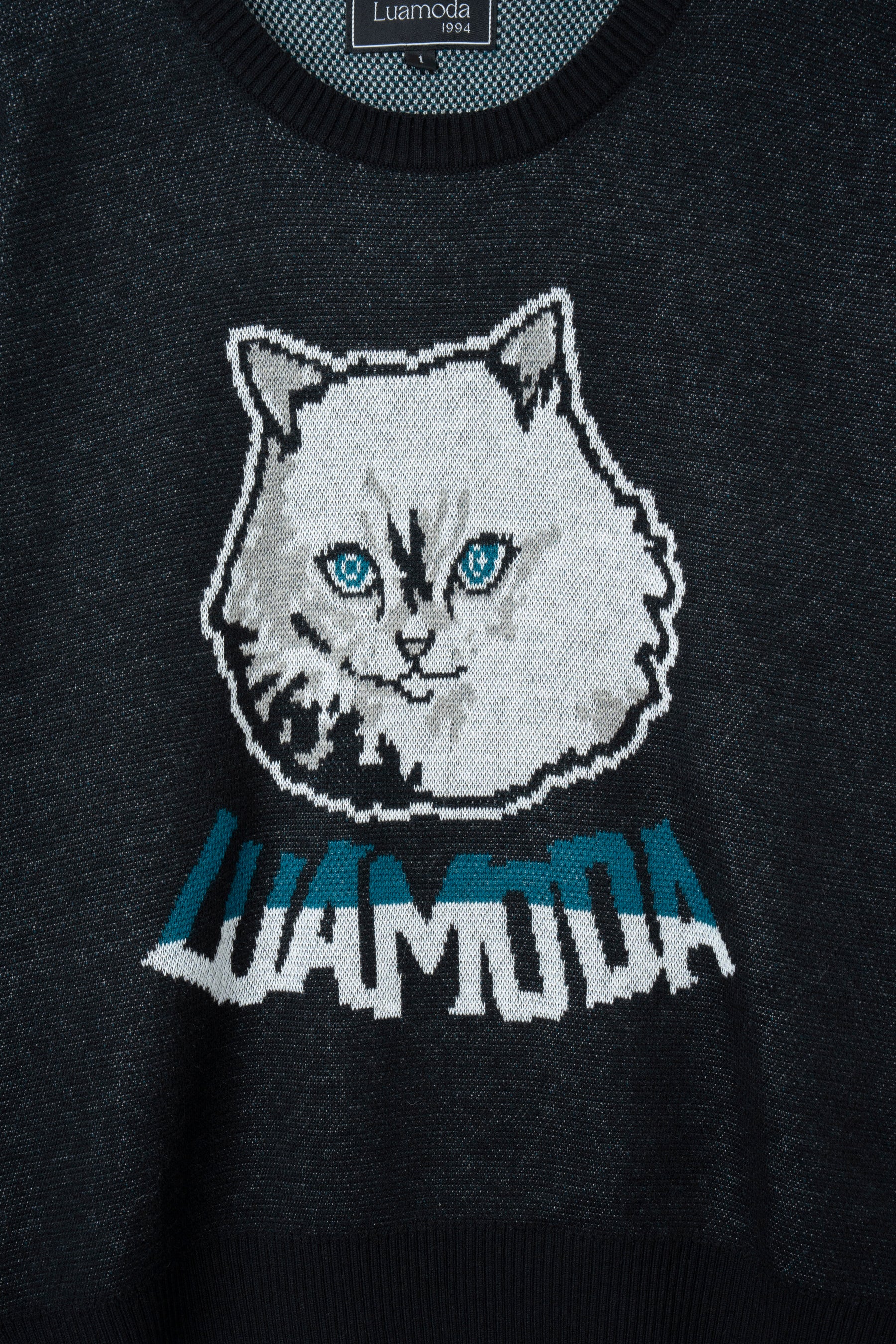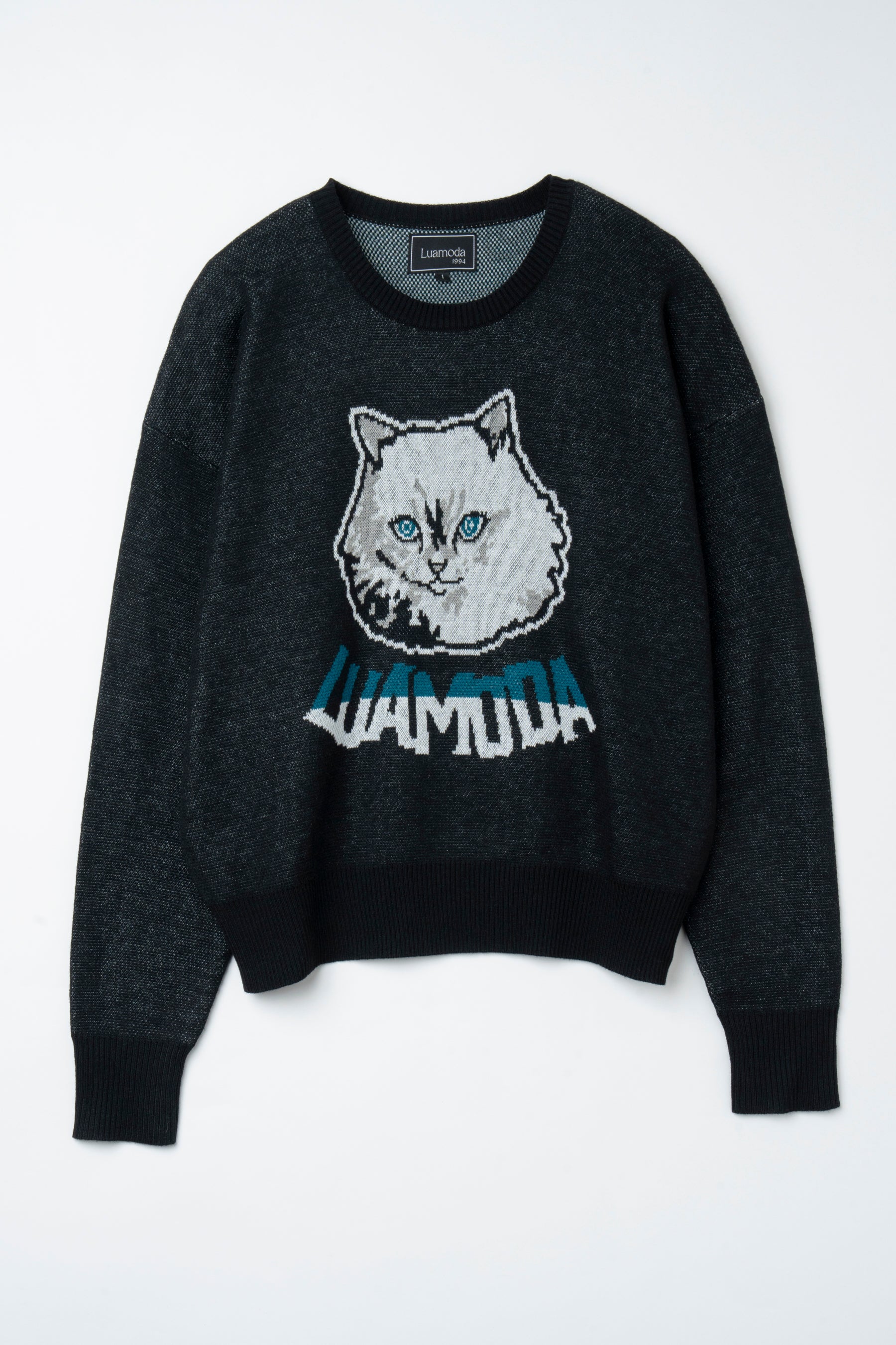 オリジナルのキャットデザインをジャガード編みにて仕立てたニットトップス。