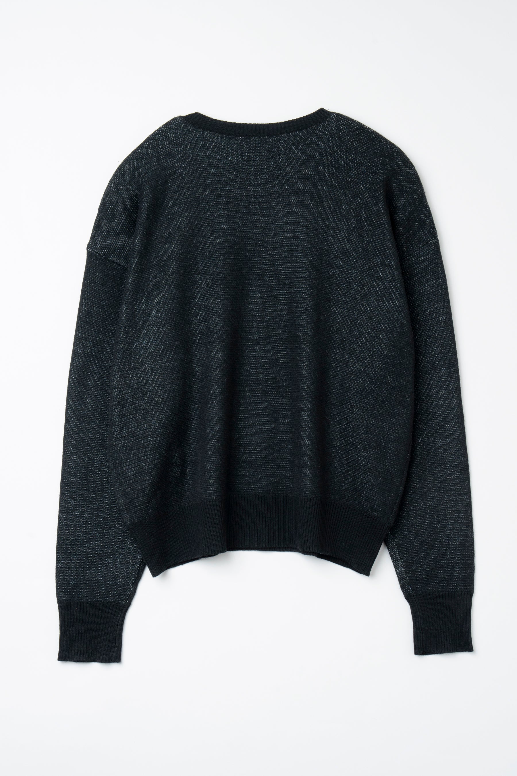 程よい厚さのニット地は秋冬は勿論、春先まで活躍の出来る万能アイテム。