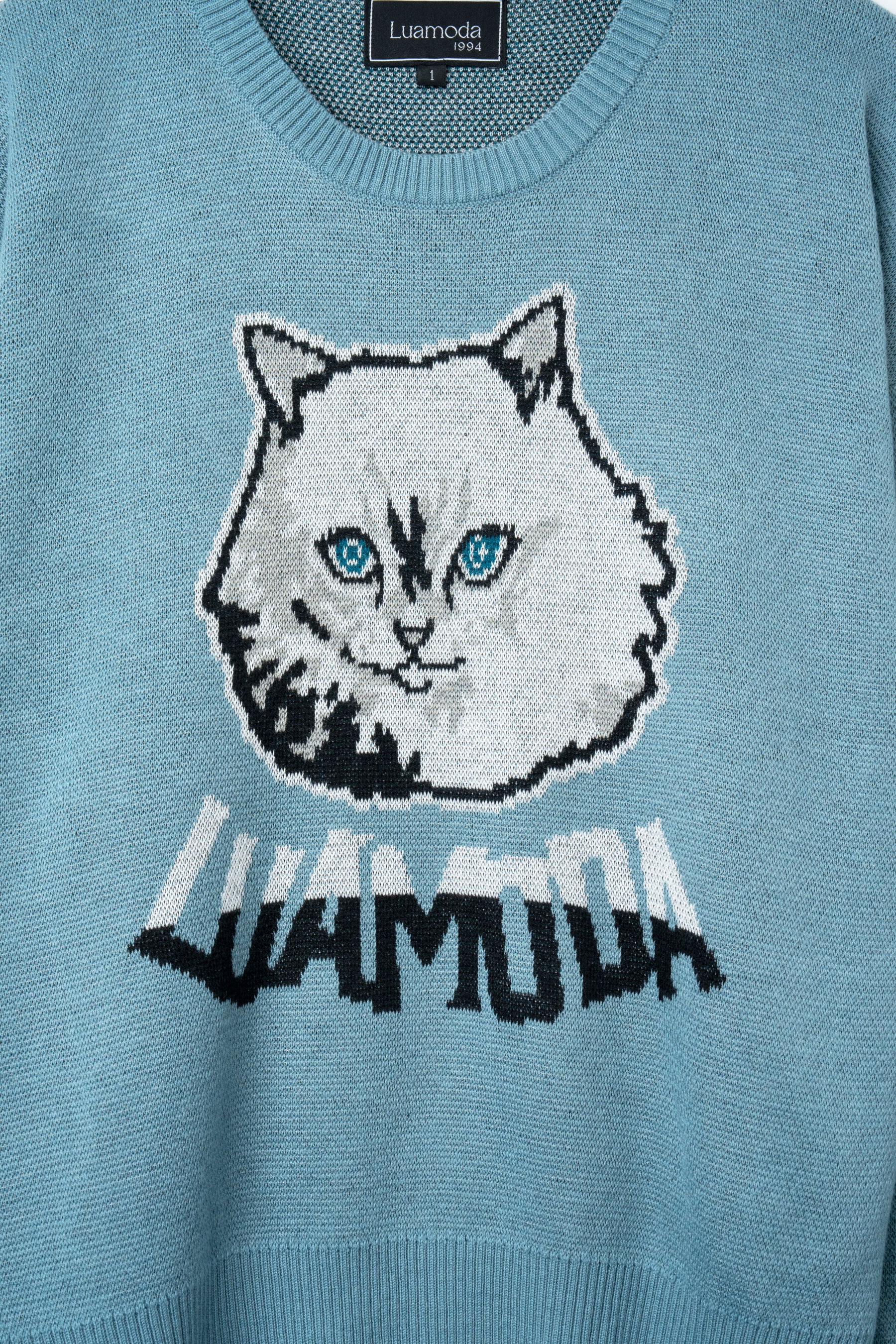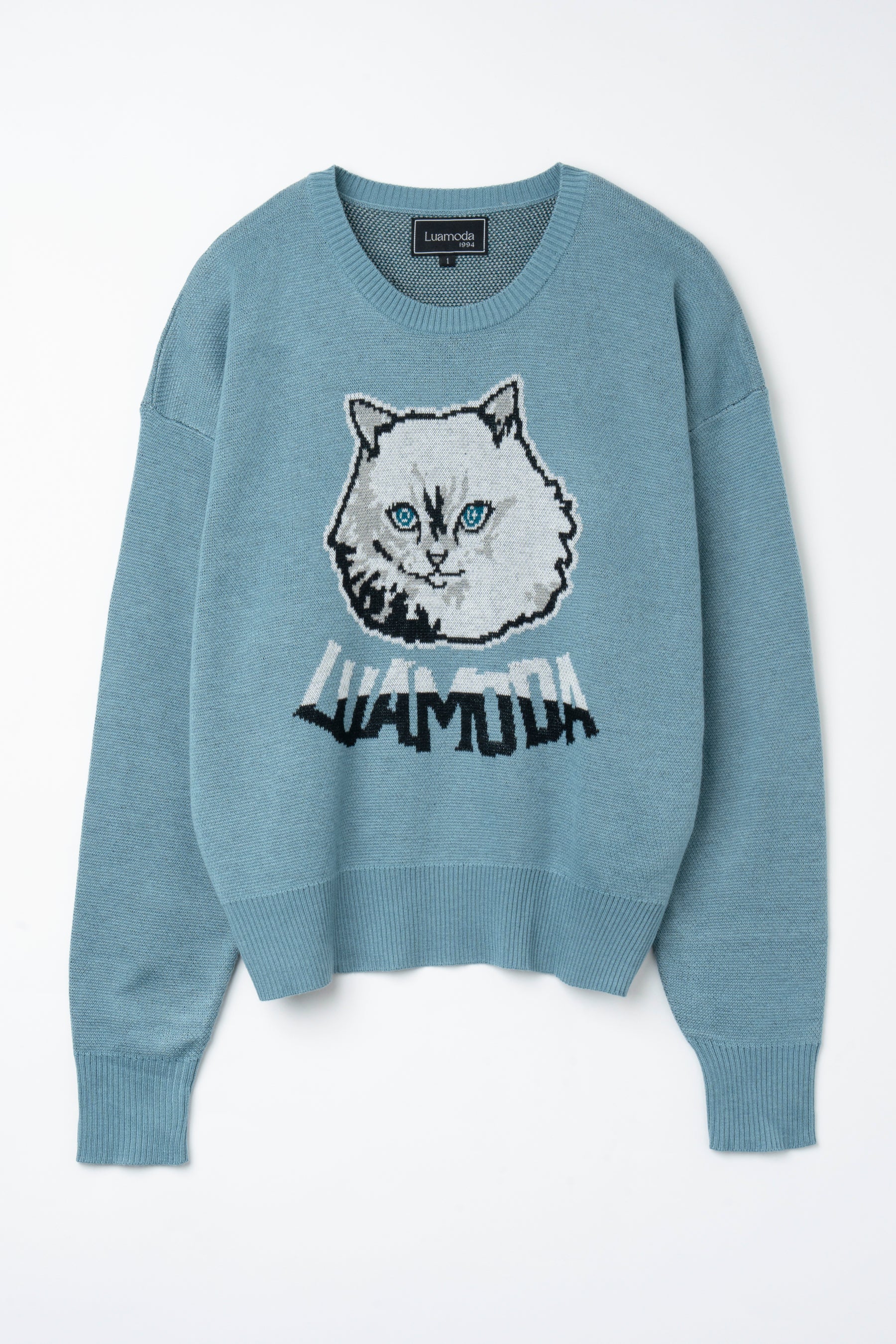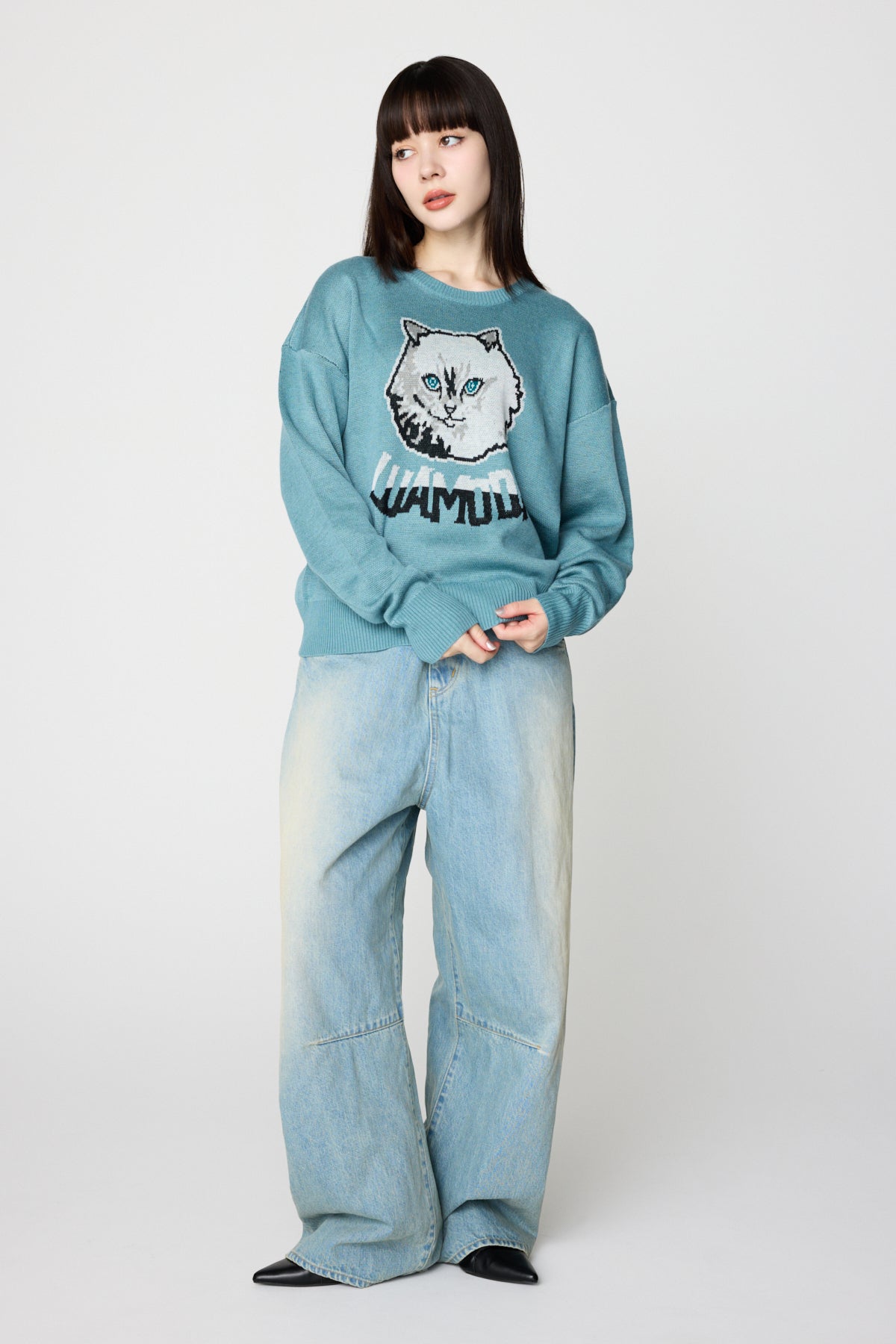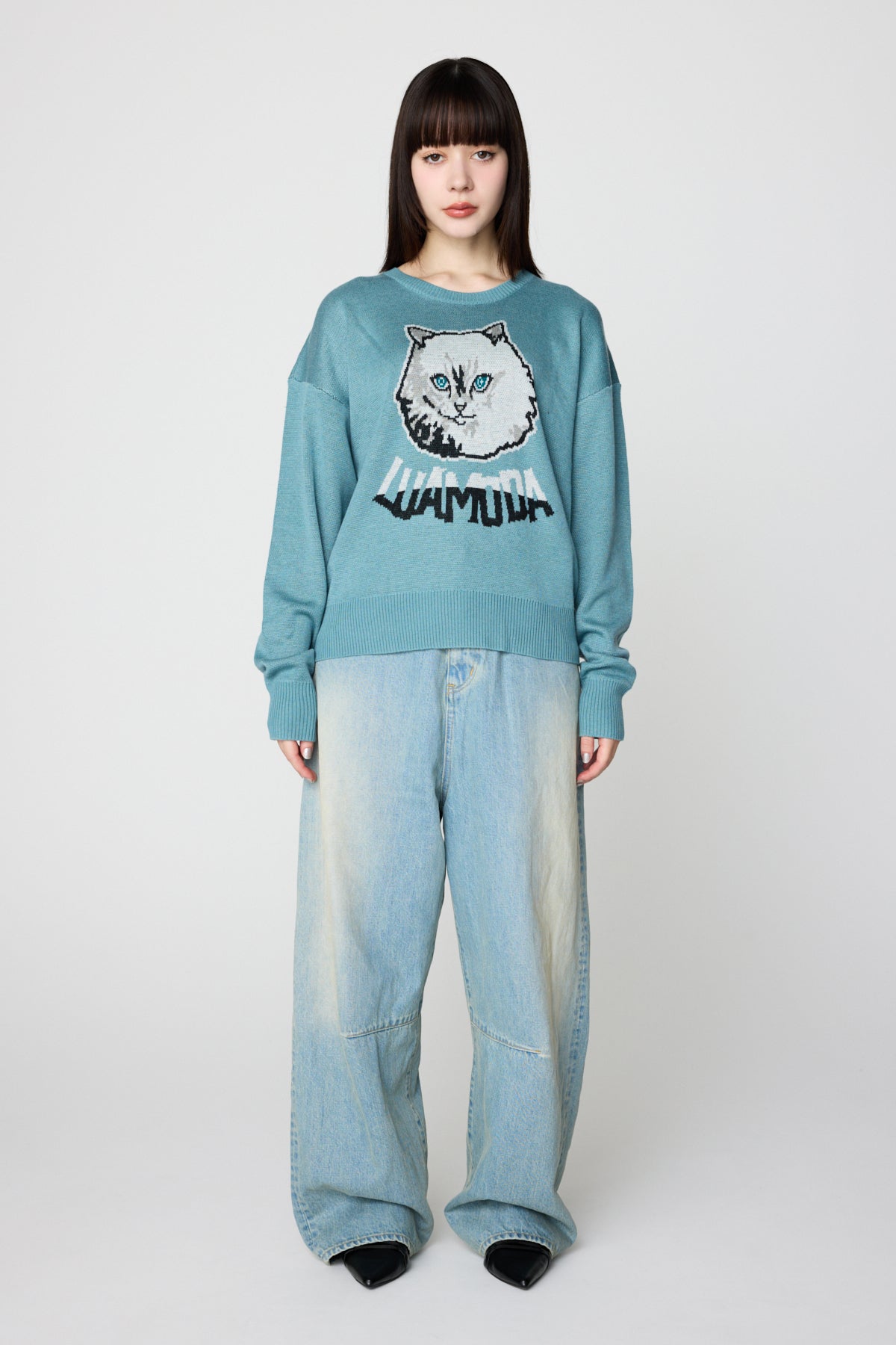 オリジナルのキャットデザインをジャガード編みにて仕立てたニットトップス。