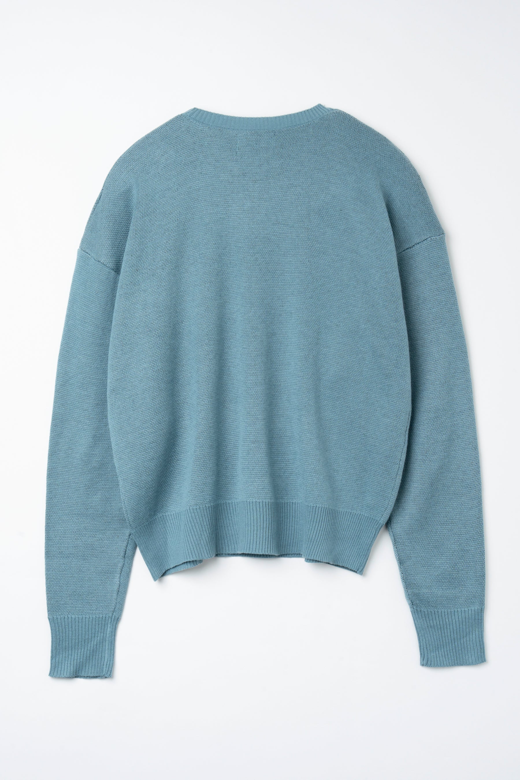 程よい厚さのニット地は秋冬は勿論、春先まで活躍の出来る万能アイテム。