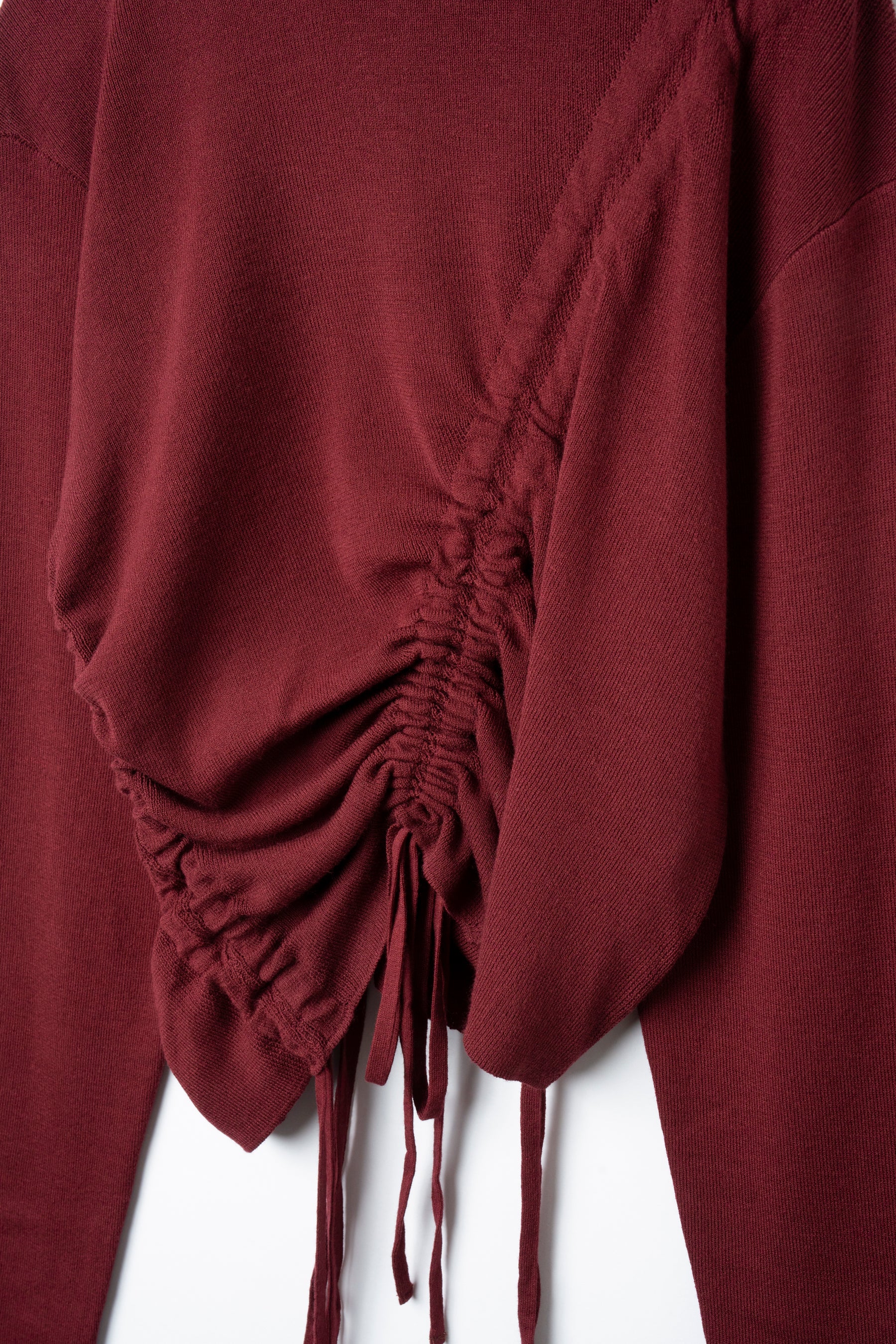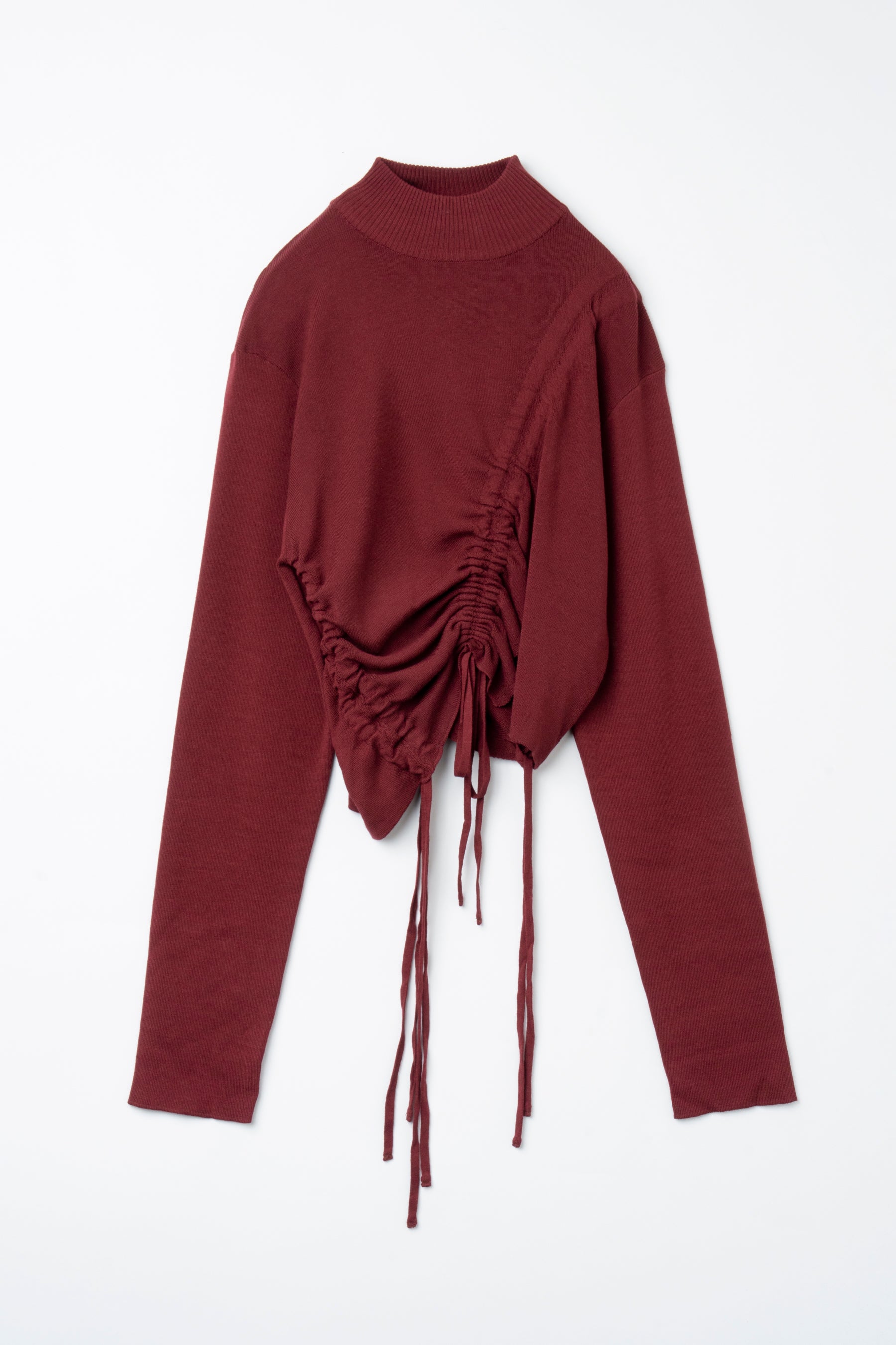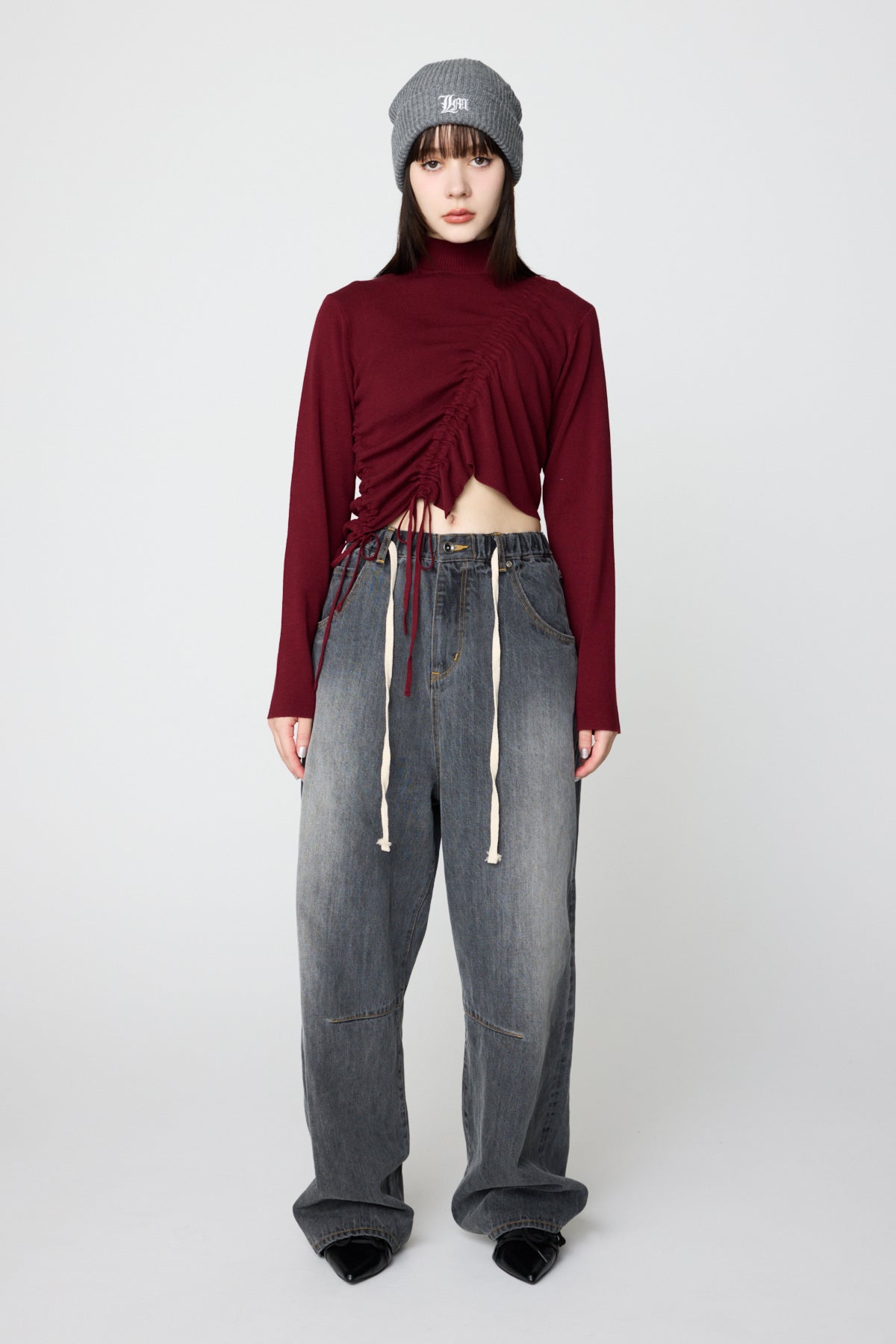各所のドローコードにてシルエットを変型する事が出来る為、アレンジ次第で様々なスタイリングを楽しめる一着。