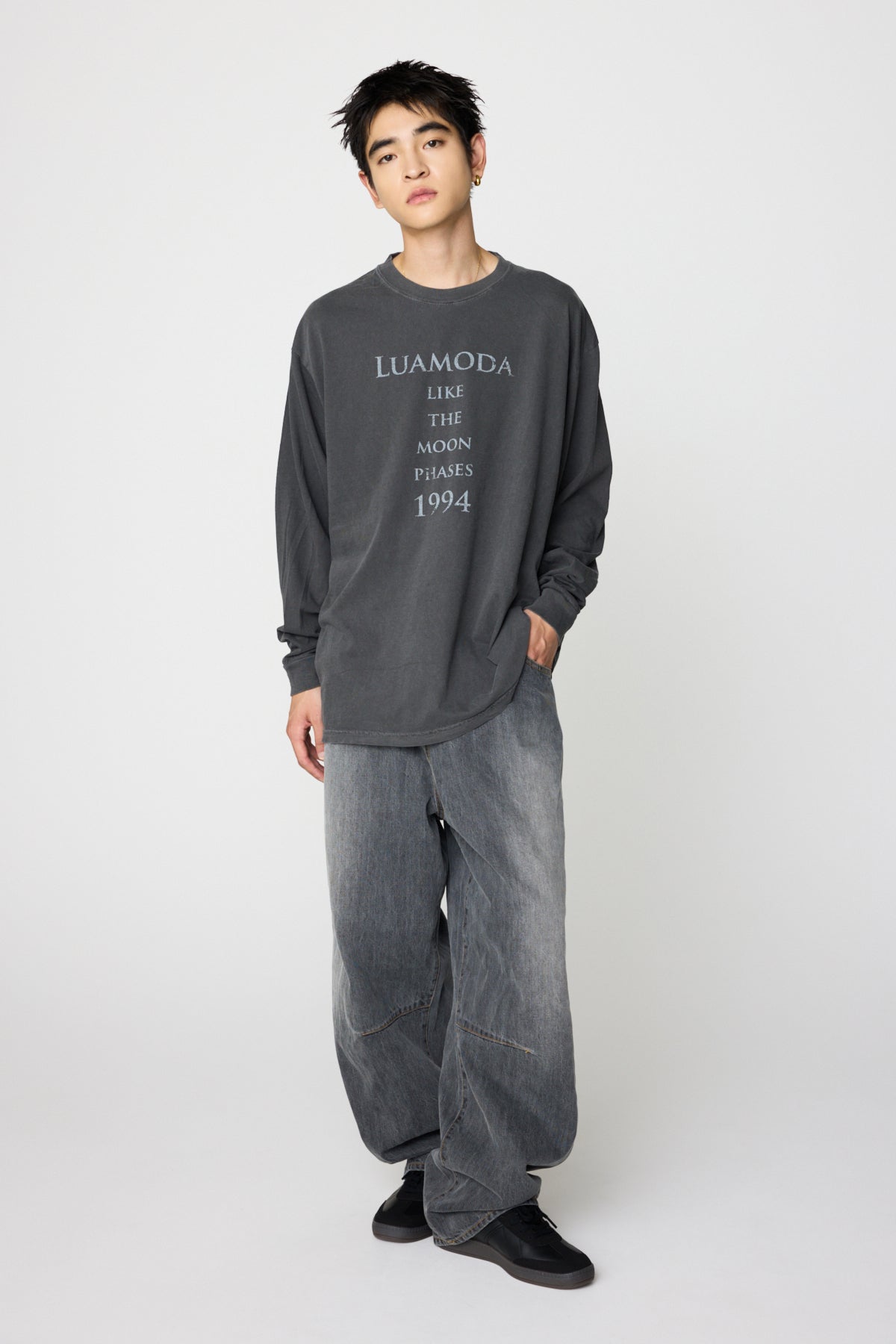 ブランドロゴとメッセージをヴィンテージ調にデザインしたデザインL/STee。