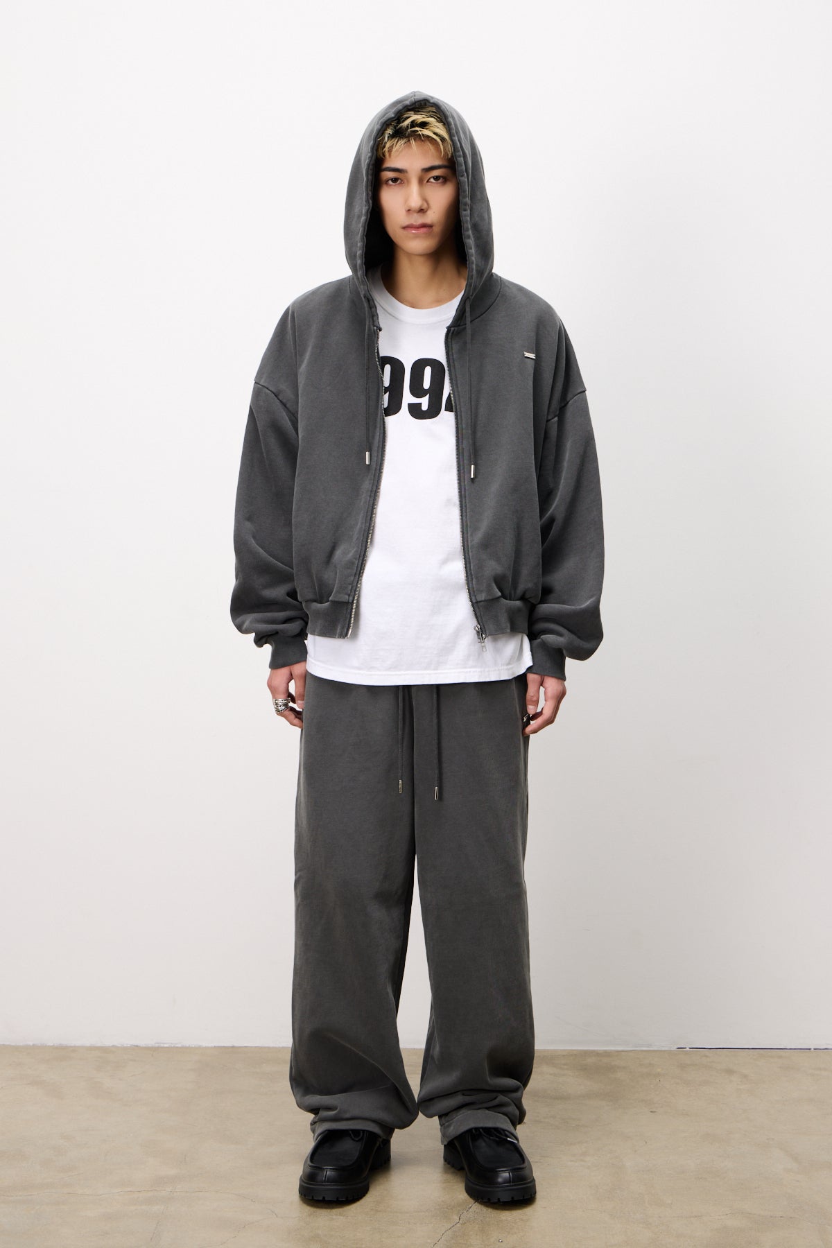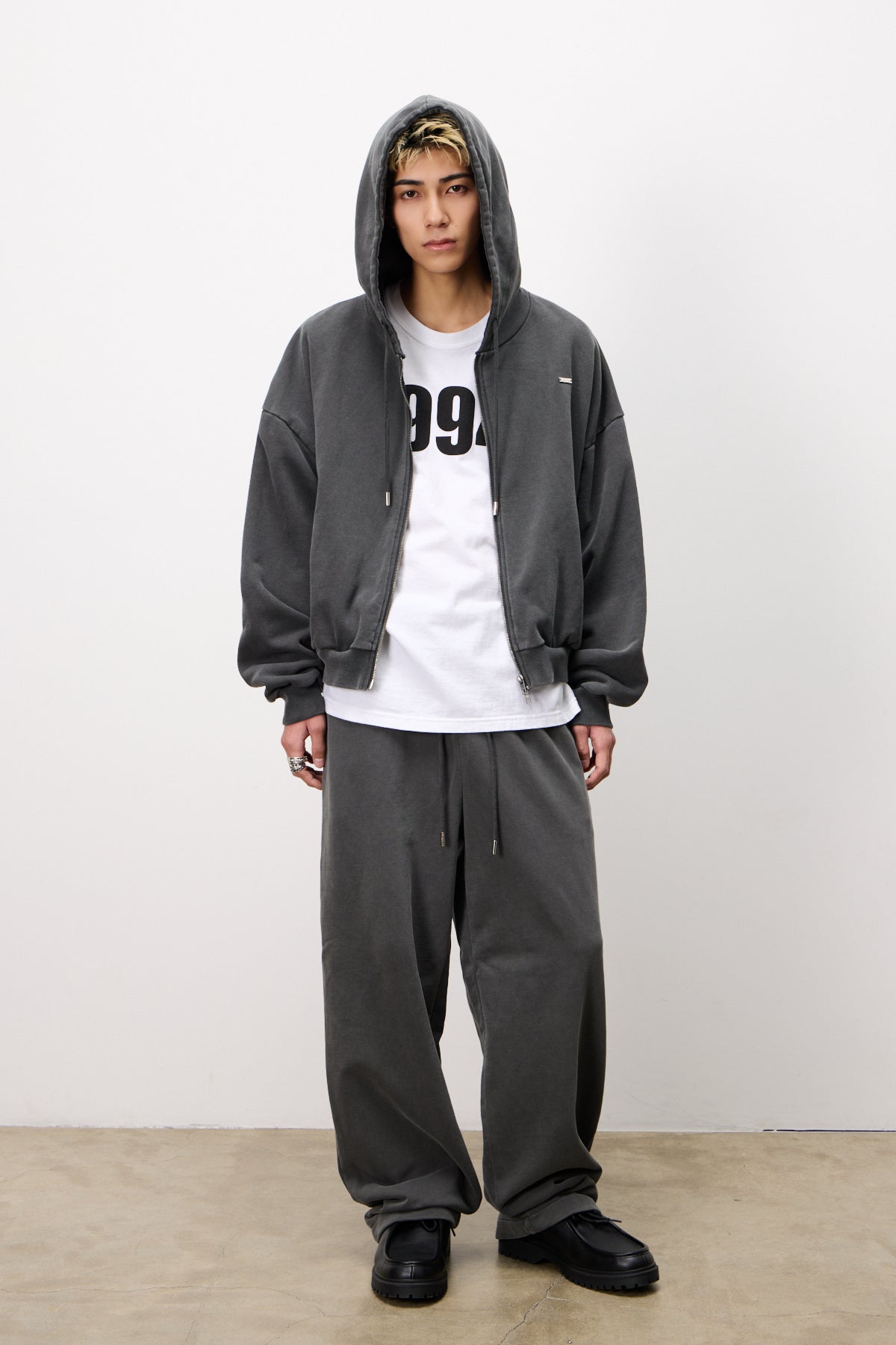 同シリーズ『Pigment Zip Hoodie』とのセットアップがおすすめ。