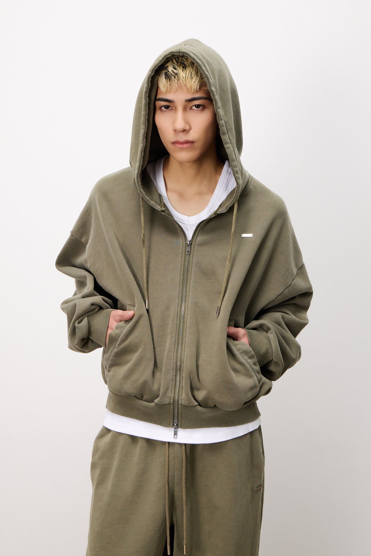 Pigment Zip Hoodie(V.KHAKI)