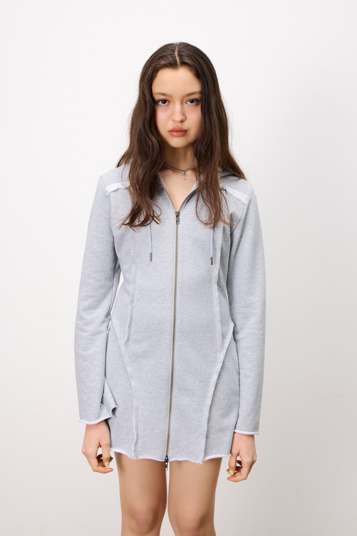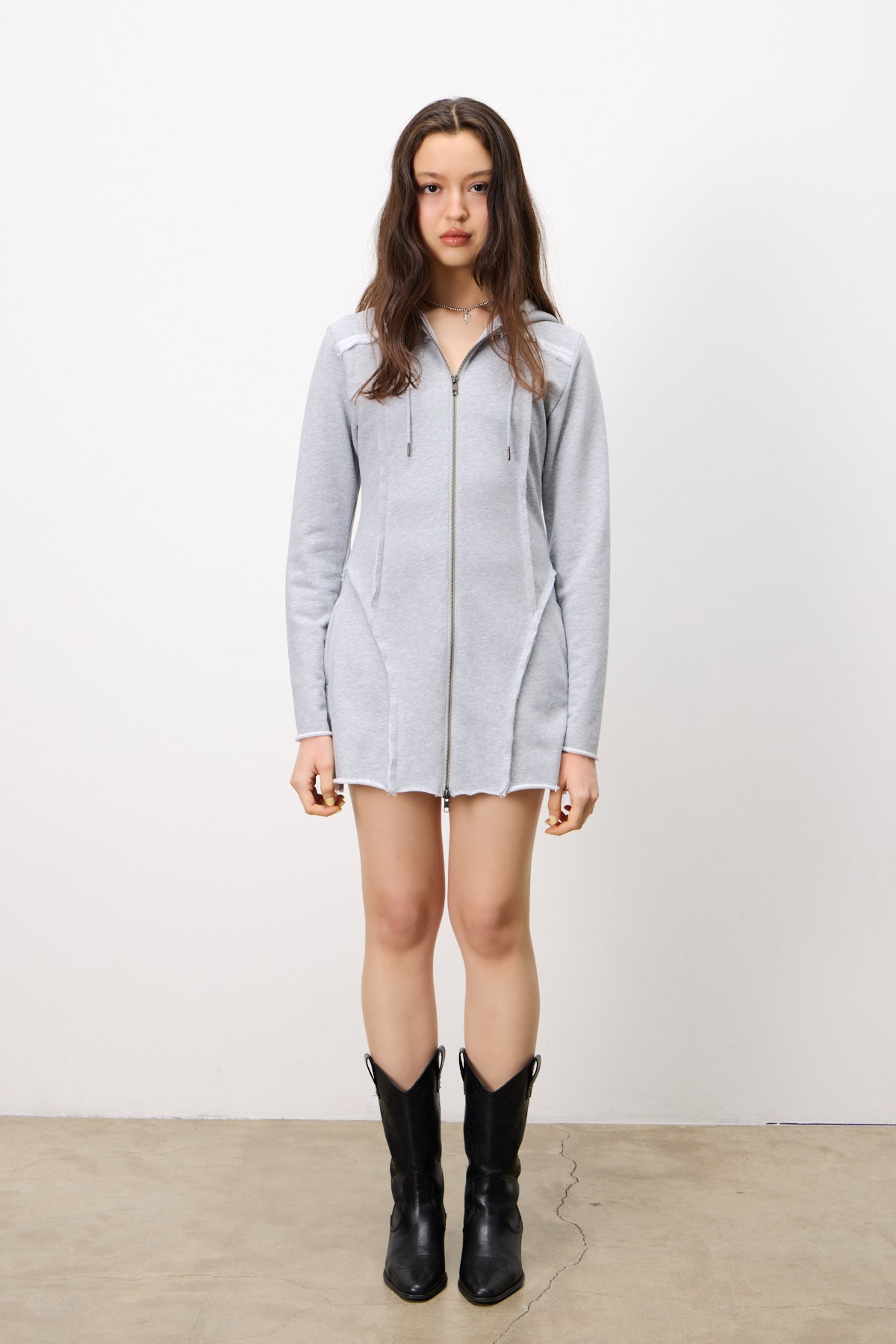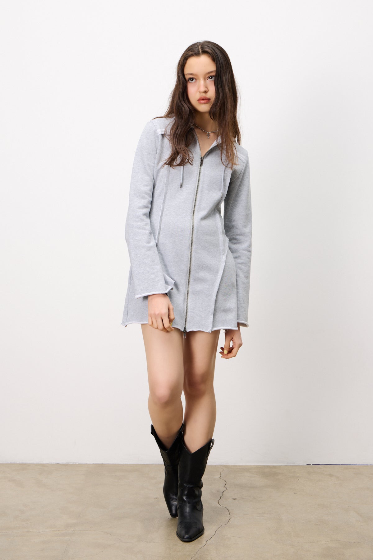 着心地の良い裏毛生地で仕立てたジップミニワンピース。