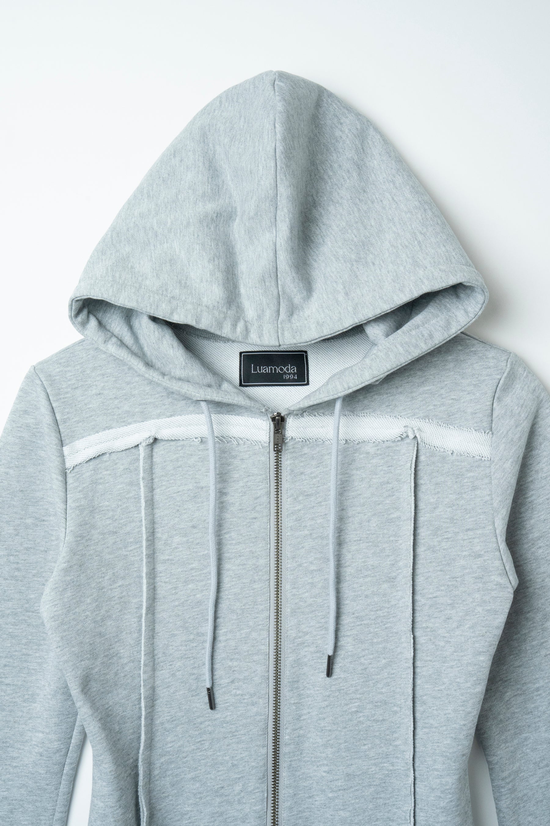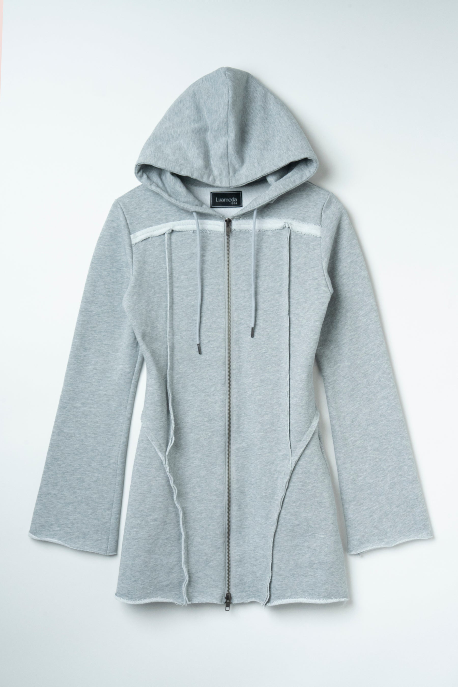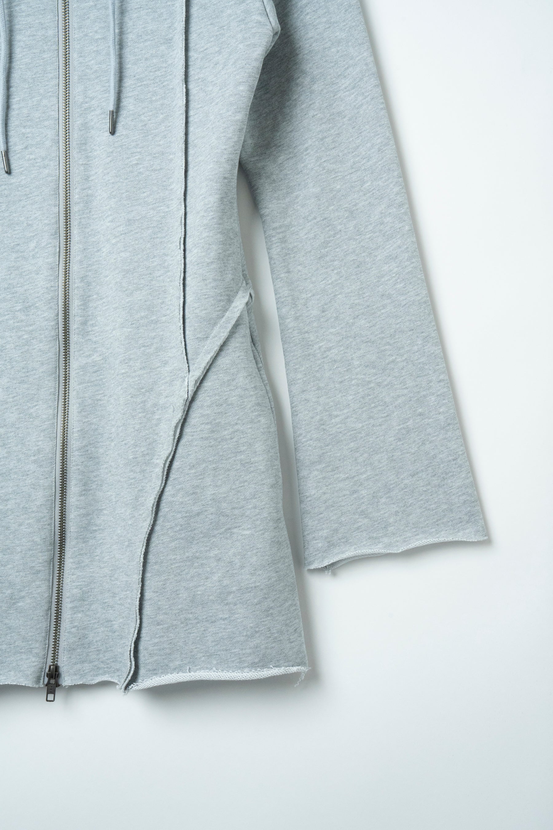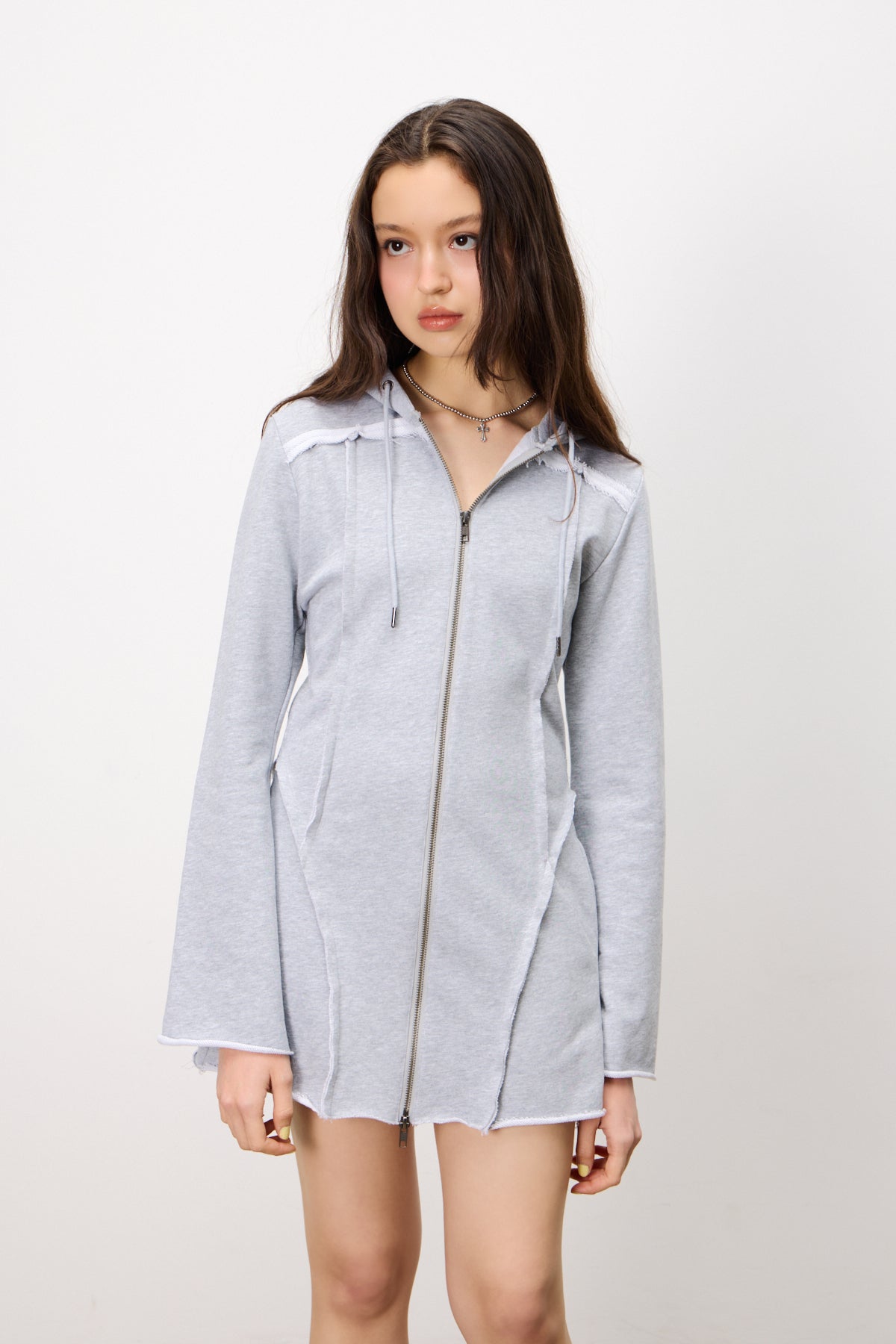 着心地の良い裏毛生地で仕立てたジップミニワンピース。